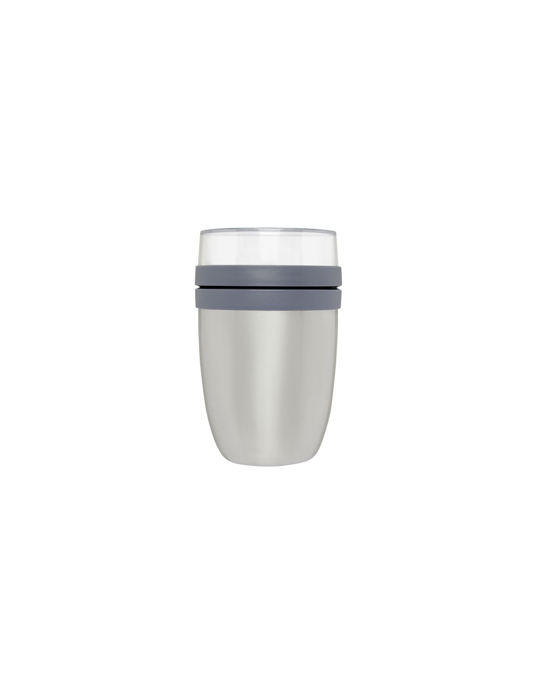 Fiambrera con aislamiento y dos compartimentos para mantener los ingredientes separados. Ambos recipientes tienen una tapa separada para que los ingredientes no se mezclen. Mantiene la comida caliente durante diez horas y fría durante dieciséis horas. Para que la comida se mantenga caliente o fría el mayor tiempo posible, se recomienda enjuagar la fiambrera con agua caliente o fría antes de llenarla. El contenido del recipiente transparente superior es de 200 ml, lo que significa que puede contener unos 75 gramos de alimentos sólidos. La capacidad del recipiente inferior es de 500 ml. De material duradero, el exterior de la fiambrera se mantiene fresco y seco. Se recomienda lavarla a mano. Las partes de plástico del tapón se pueden lavar en el lavavajillas. Hermética. Sin BPA. Garantía Mepal de 2 años.