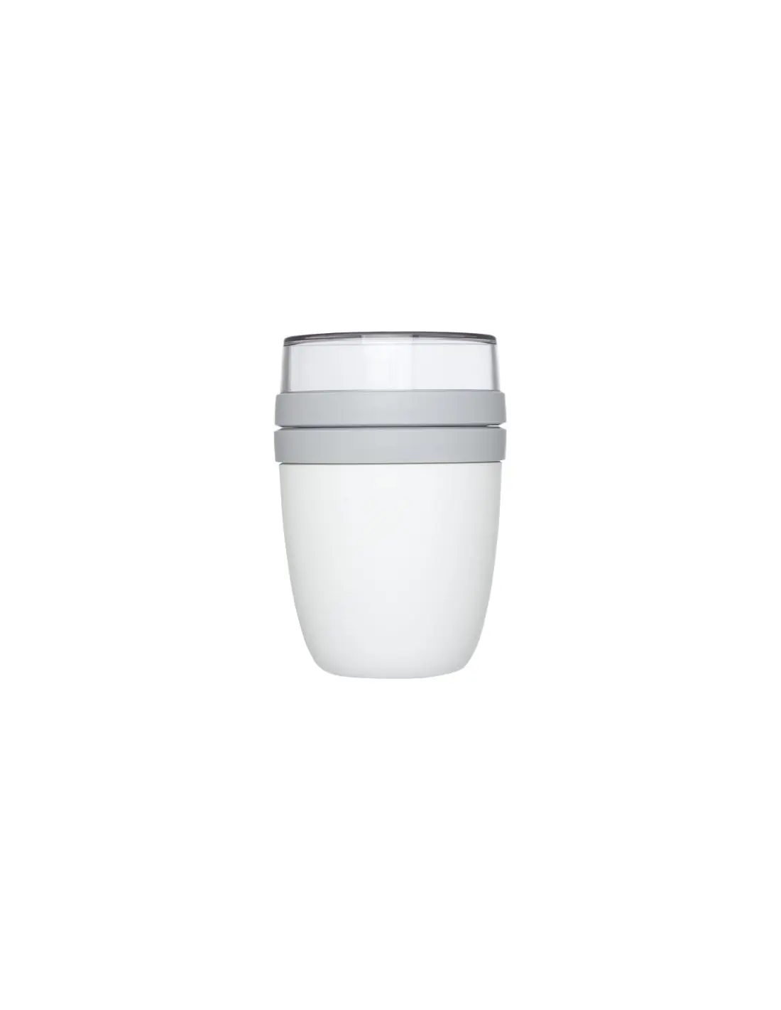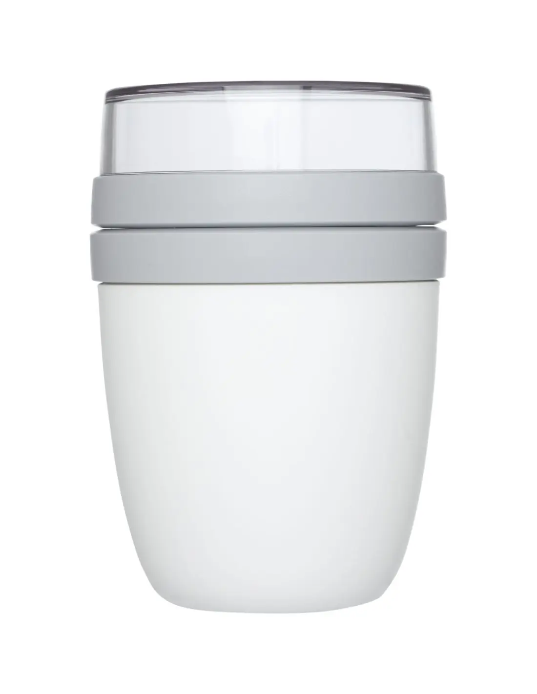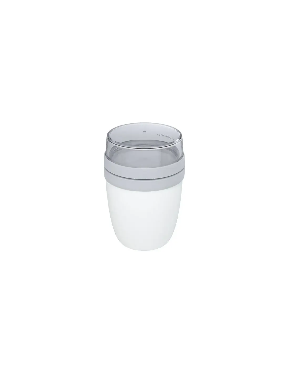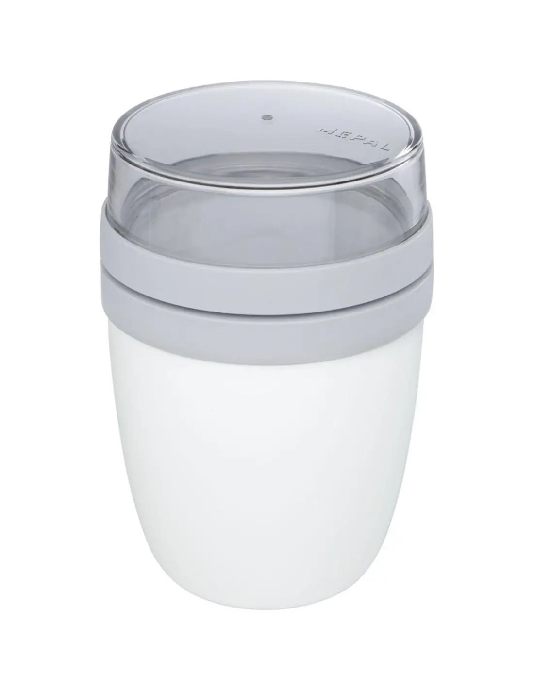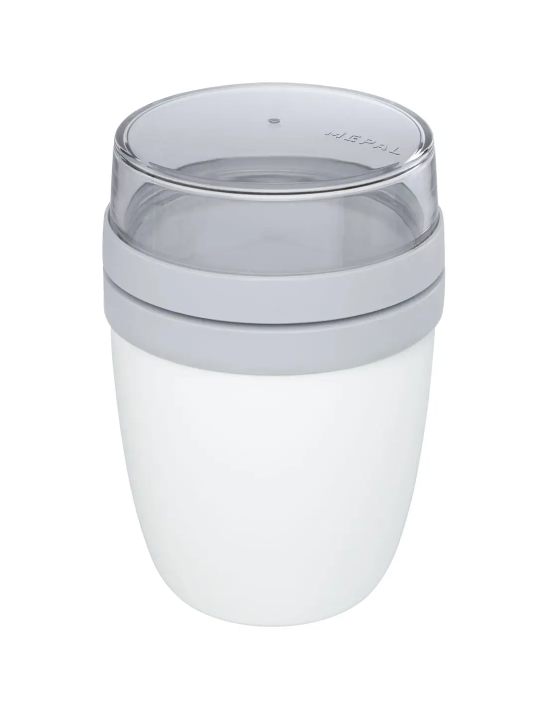 Fiambrera con dos compartimentos diferentes para mantener los diferentes ingredientes separados. Ambos recipientes tienen una tapa independiente y, por lo tanto, permanecen limpios. El contenido del recipiente transparente superior es de 200 ml, lo que significa que puede contener unos 75 gramos de alimentos sólidos. La capacidad del recipiente inferior es de 500 ml. Fabricada con material duradero y apta para el congelador, el microondas (sin la tapa) y el lavavajillas. El recipiente transparente superior no debe utilizarse en el microondas. Hermética. Sin BPA. Garantía Mepal de 2 años.