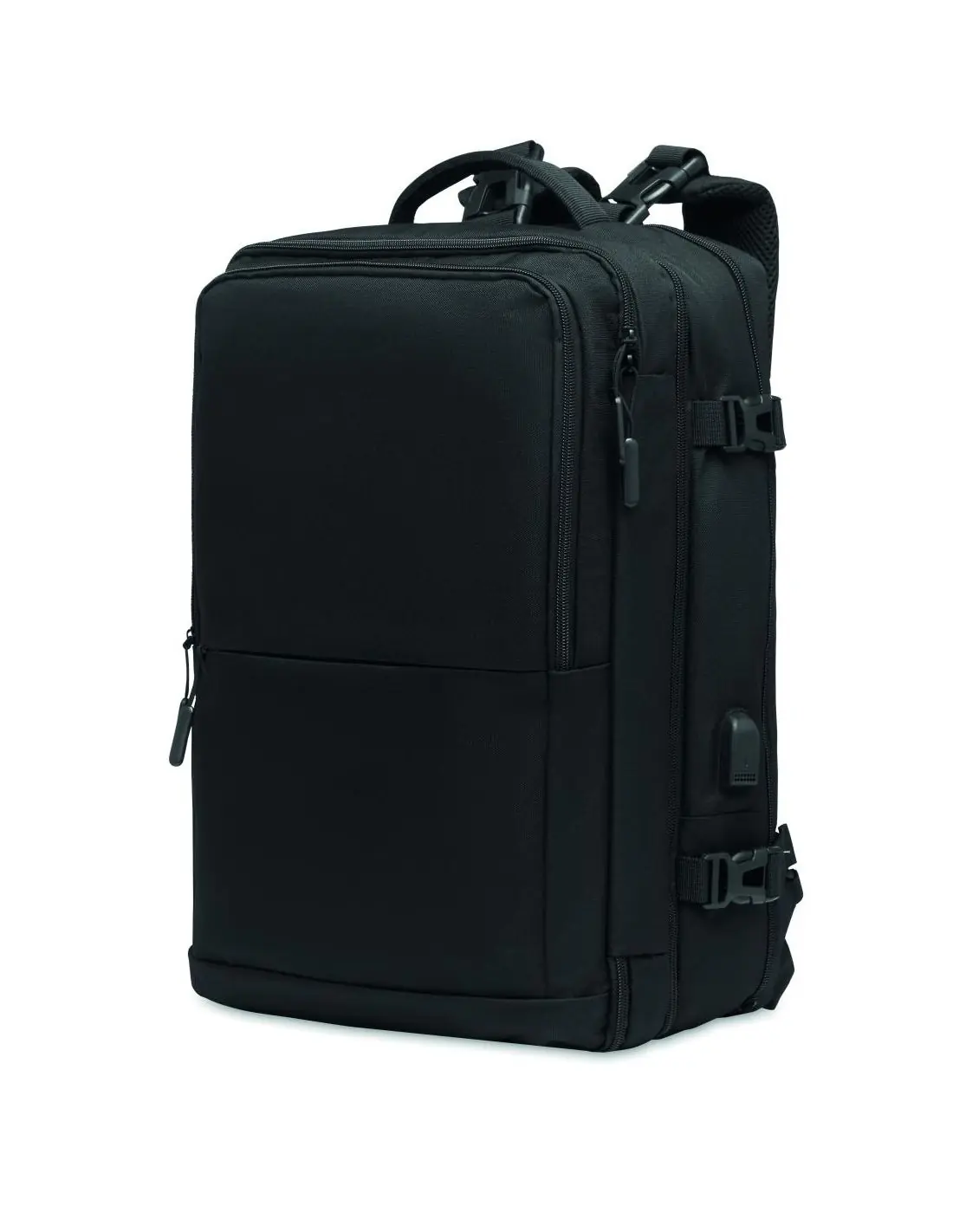 Mochila Travel Tech de poliéster 600D RPET. Modular / incluye varios compartimentos.