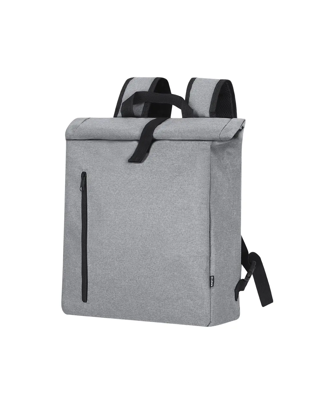 Mochila para bicicleta fabricada en resistente RPET 600D. Versátil y con cierre de hebilla, incluye un práctico bolsillo frontal con cremallera. En su parte trasera cuenta con enganches específicos universales para bicicleta, garantizando una mayor comodidad y seguridad en los desplazamientos. Además, dispone de un asas acolchadas y ajustables para los hombros, para así transportarla con mayor confort cuando se desacopla de la bicicleta. Etiqueta exterior con logotipo RPET.El material RPET se elabora a partir de plástico reciclado, para así fomentar la reutilización de residuos plásticos y ayudar a la sostenibilidad del planeta.