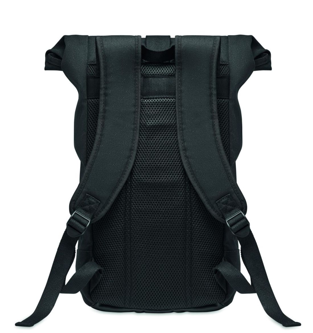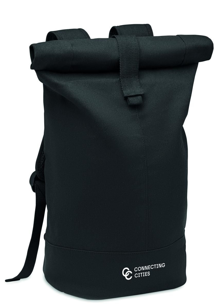 Mochila rolltop de canvas lavado de alta calidad de 340 gr/m² con refuerzo acolchado en la espalda. El forro es de RPET 210D.