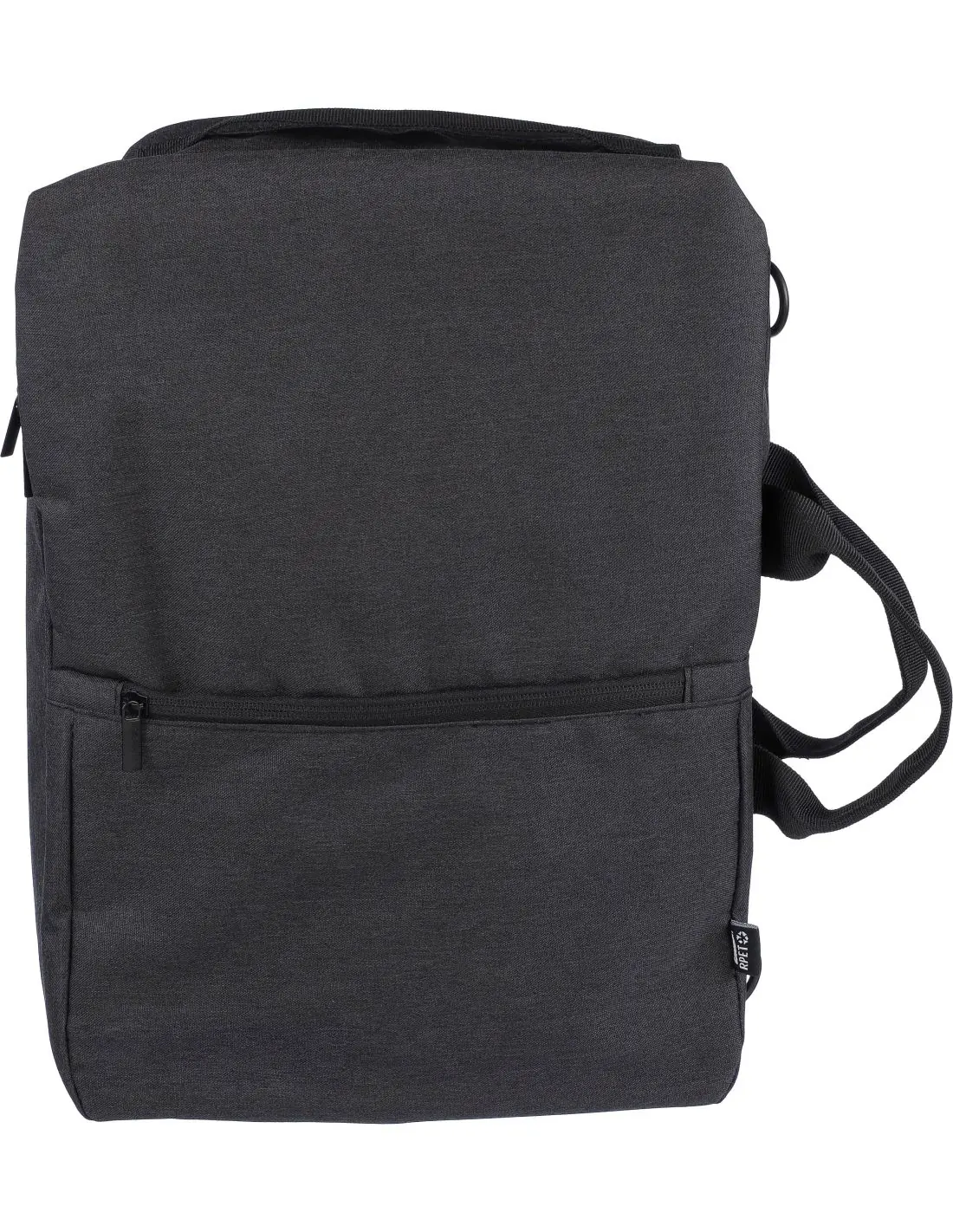 Mochila para portátil (15'') de poliéster rPET (300D) con forro interior de 210D. Para cabina. Con asa superior, correas de hombro ajustables que se pueden plegar detrás del respaldo acolchado y ventilado, y dos asas en el lateral. Compartimento para portátil con velcro y pequeño compartimento con cremallera. Peso aprox. 8 kg. Incluye etiqueta rPET.