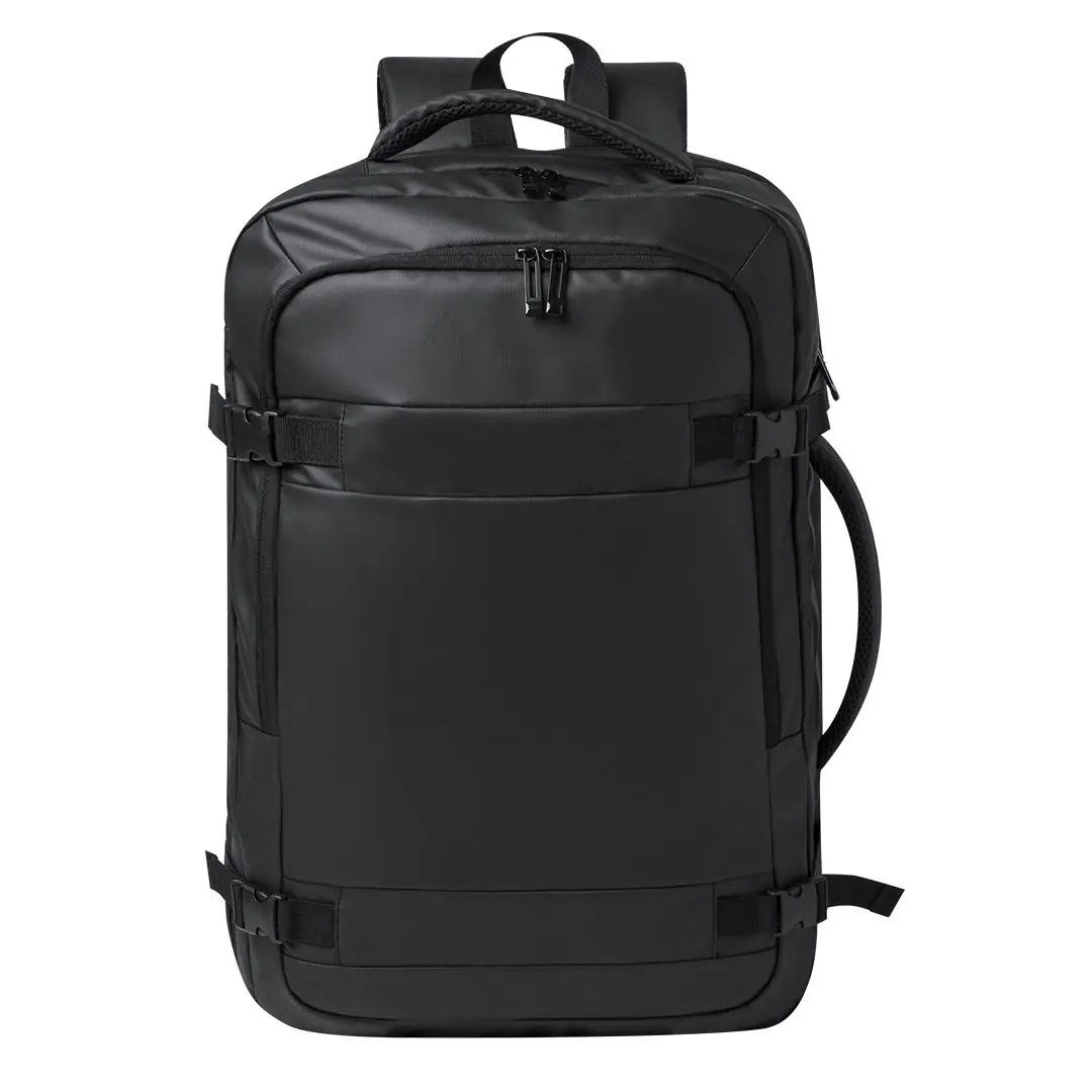 Mochila portadocumentos confeccionada en elegante polipiel. Presenta un diseño urbano que incluye un bolsillo acolchado para portátil de hasta 17 pulgadas. Reforzada con cintas laterales, cuenta con cierre de hebilla de seguridad y compartimentos con cierre de cremallera de doble tirador. Sus cintas de hombros y la espalda están acolchadas y son ajustables. Además, cuenta con un cinta para fijarla en trolley y una asa acolchada para mayor comodidad al usarla como portadocumentos. Presentado en una bolsa individual reciclada.