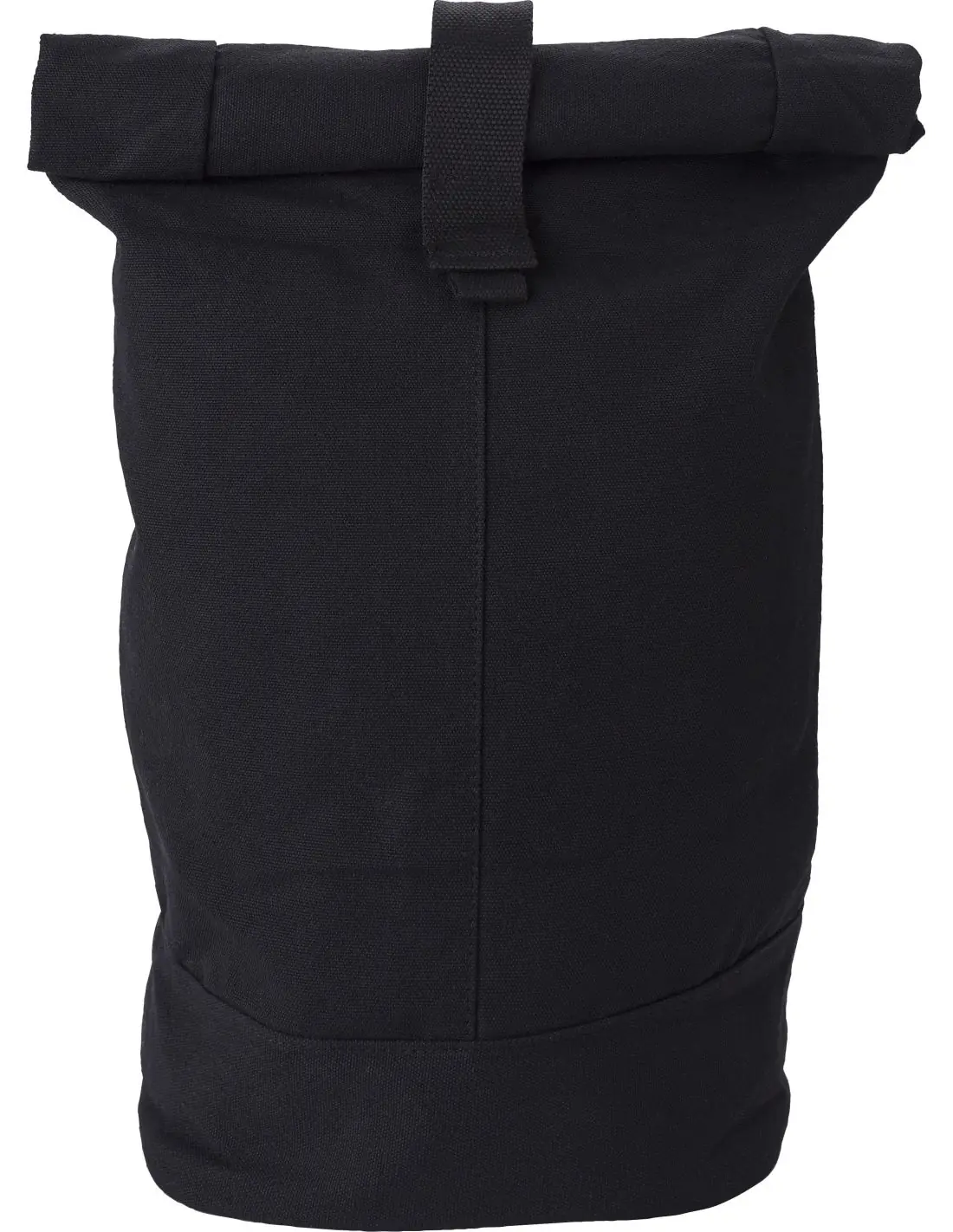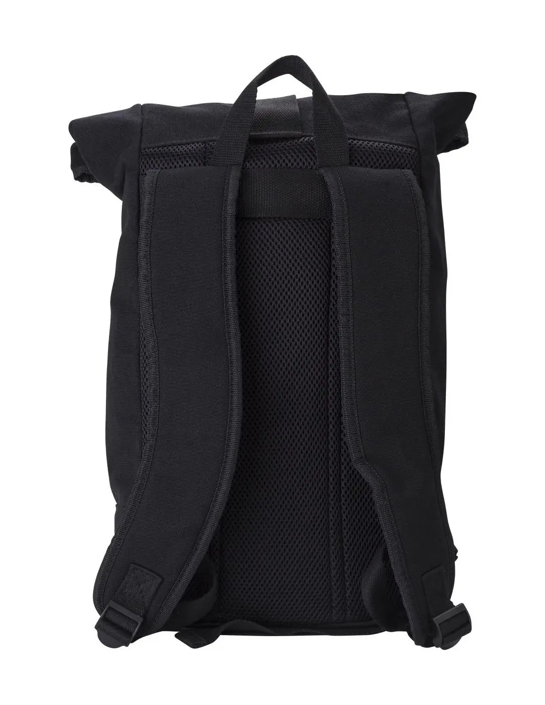 Mochila enrollable de poliéster con cierre de velcro. Lona de 340 gramos con forro rPET 210D y respaldo de malla. La parte inferior es rPET PU.