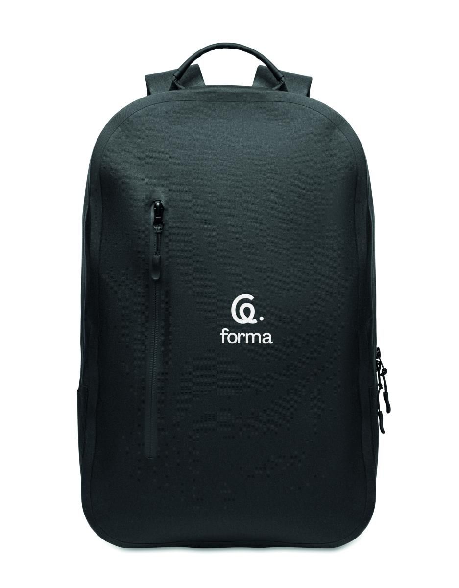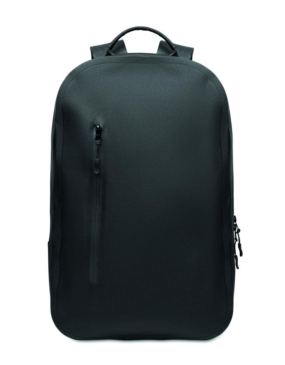 Mochila para portátil de 16'' en poliéster RPET 300D y forro de poliéster 210D. Tejido resistente al agua. Bolsillo oculto con cremallera y soporte…