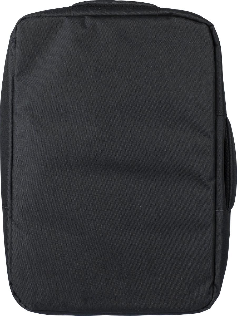 Mochila para portátil de poliéster rPET 300D con un forro de rPET 210D. Cuenta con un gran compartimento con cremallera con múltiples bolsillos insertables, un bolsillo para portátil (15’’) con cierre de velcro. y una capacidad de 12 litros. Tiene un respaldo reforzado y ventilado, tirantes ajustables, un asa lateral y una correa para acoplar al trolley. Incluye una etiqueta indicando que es material reciclado. Capacidad de carga: 10 kg.