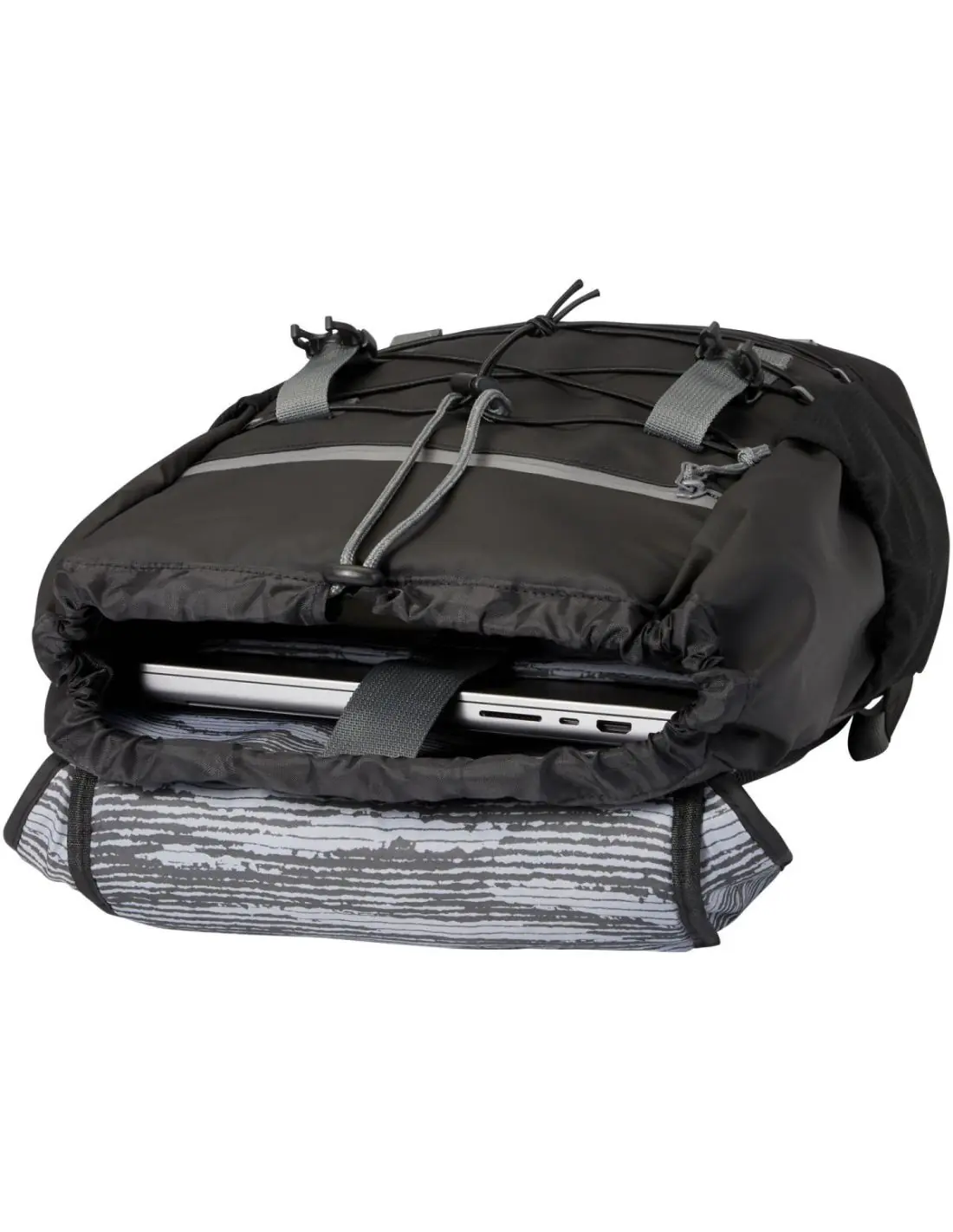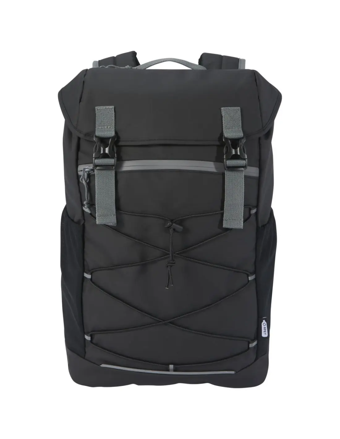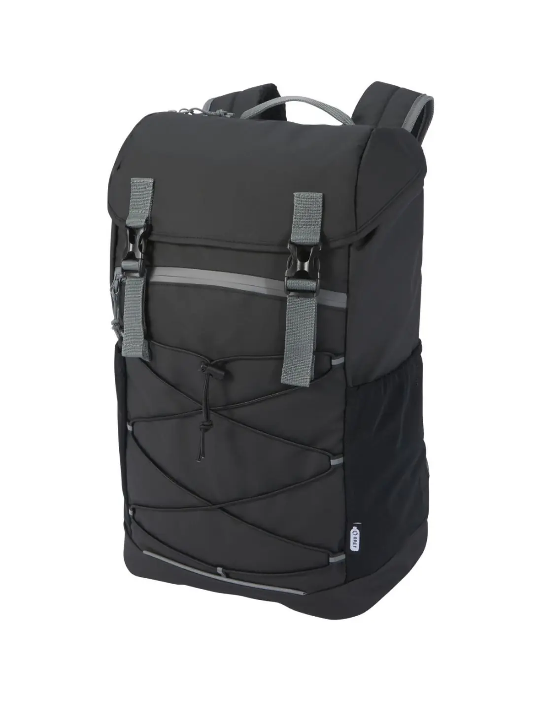Mochila para portátil resistente al agua fabricada con materiales reciclados con certificado GRS, incluidas las cremalleras. Cuenta con un espacioso compartimento para portátiles de 15,6" con cordón y hebillas ajustables para maximizar el espacio de almacenamiento debajo de la solapa. Esta mochila tiene múltiples bolsillos, incluido uno delantero con cremallera y cordones elásticos para guardar y organizar, así como ribetes reflectantes para mayor visibilidad. El respaldo moldeado y acolchado y la correa ajustable para el pecho hacen que sea cómoda de llevar incluso cuando está completamente cargada. Los materiales reciclados GRS están presentes en el tejido principal, el forro, las correas y las cremalleras. Capacidad: 23 litros. Sin PVC.