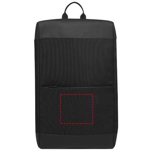 Fabricada con poliéster reciclado resistente GRS 900D, la mochila tiene todas las funciones necesarias. Cuenta con una funda para portátil acolchada adecuada para un portátil de 15,6", una funda adicional para un portátil pequeño o tableta y bolsillos con cremallera para artículos más pequeños. Además, dispone de una correa elástica en el interior para colocar botellas de agua. La parte posterior de la mochila tiene una cómoda correa elástica, lo que facilita su fijación a un carrito.