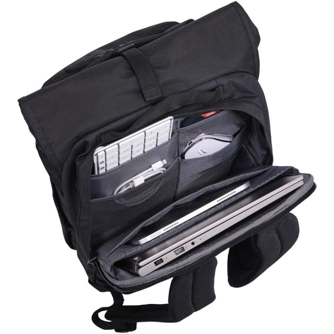 La mochila para portátil de 17Case Logic Variate, así como una tableta, un teclado, un ratón y otros objetos esenciales. Una bolsa organizadora extraíble mantiene los accesorios pequeños en un solo lugar y facilita el transporte entre el hogar y la oficina. En el exterior, dos bolsillos laterales extensibles permiten acceder rápidamente a botellas de agua o paraguas. Diseñada para tener comodidad a diario, la mochila cuenta con un panel trasero transpirable y acolchado y correas para los hombros, además de una correa que permite sujetarla fácilmente al equipaje con ruedas.