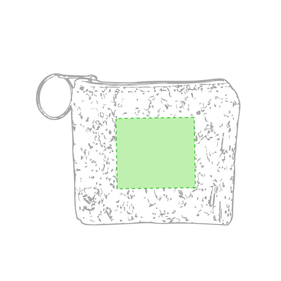 Monedero ecológico de diseño cuadrado en corcho natural y con suave forro interior. Compartimento principal con apertura de cremallera a juego y anilla llavero para transporte.
