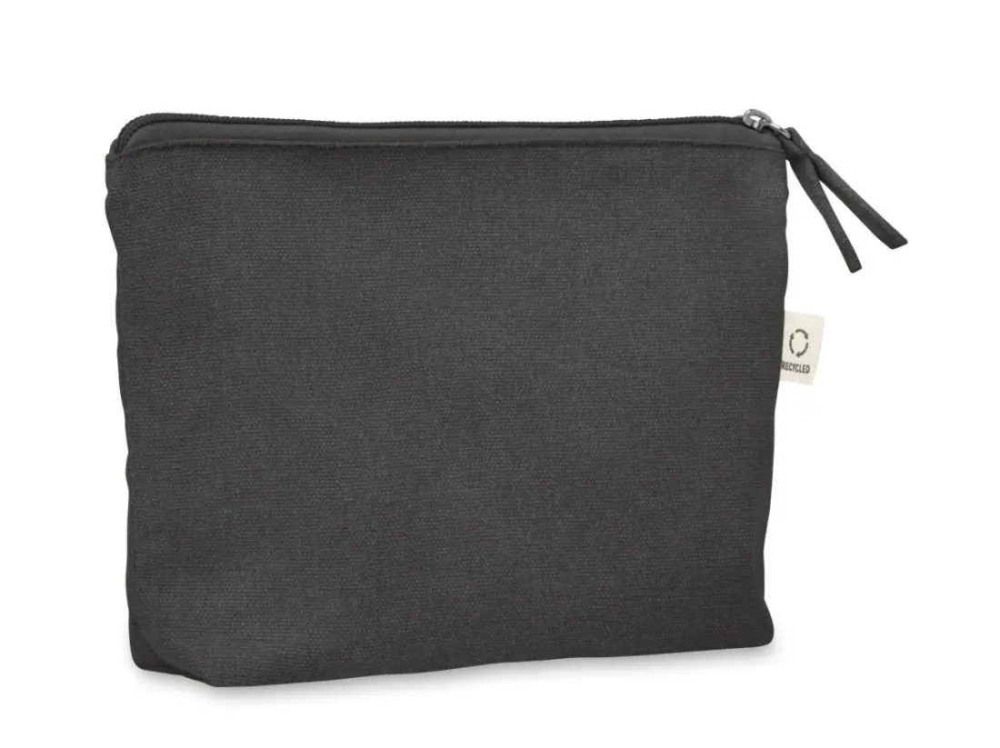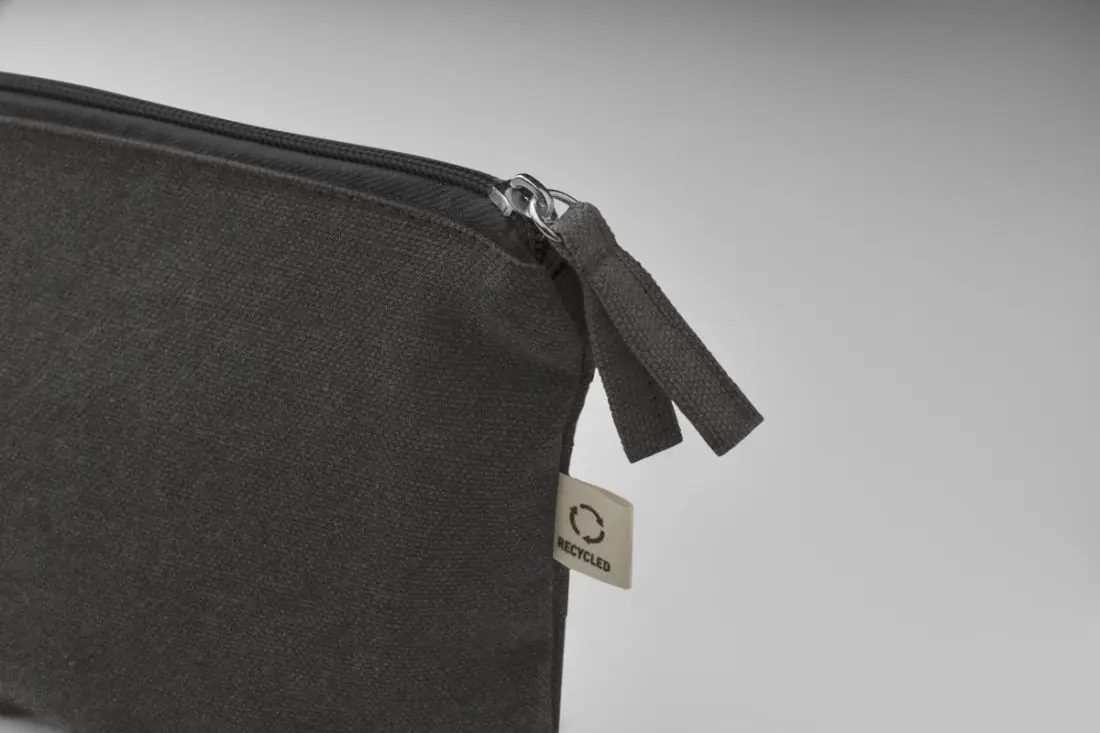 Neceser para cosméticos y/o accesorios en tejido reciclado (70% algodón reciclado y 30% poliéster RPET) con tirador de cremallera a juego. 320 gr/m². Este artículo puede encogerse después de la impresión.