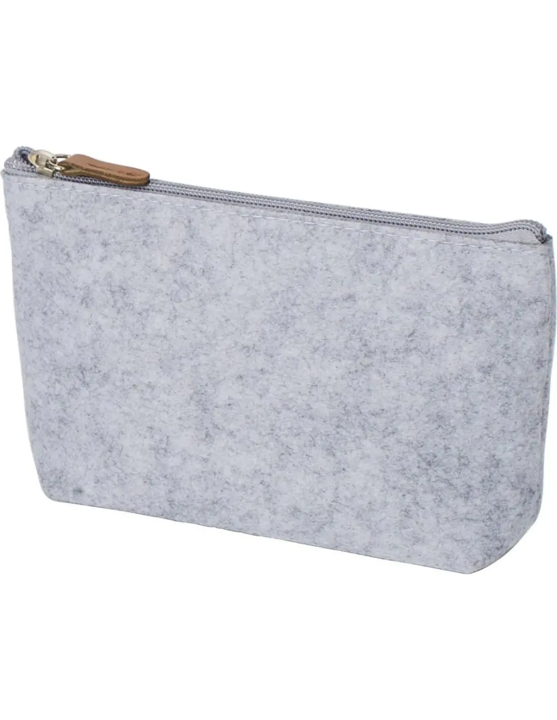 Neceser de fieltro rPET con detalles de PU y cremallera.