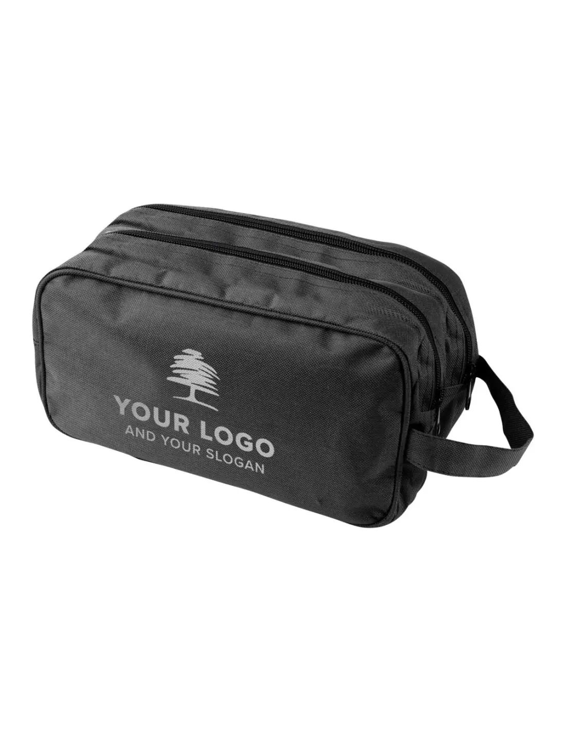 Neceser de poliéster (600 D) con 2 separaciones, cremallera y asa de mano.