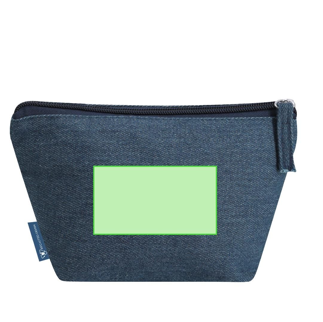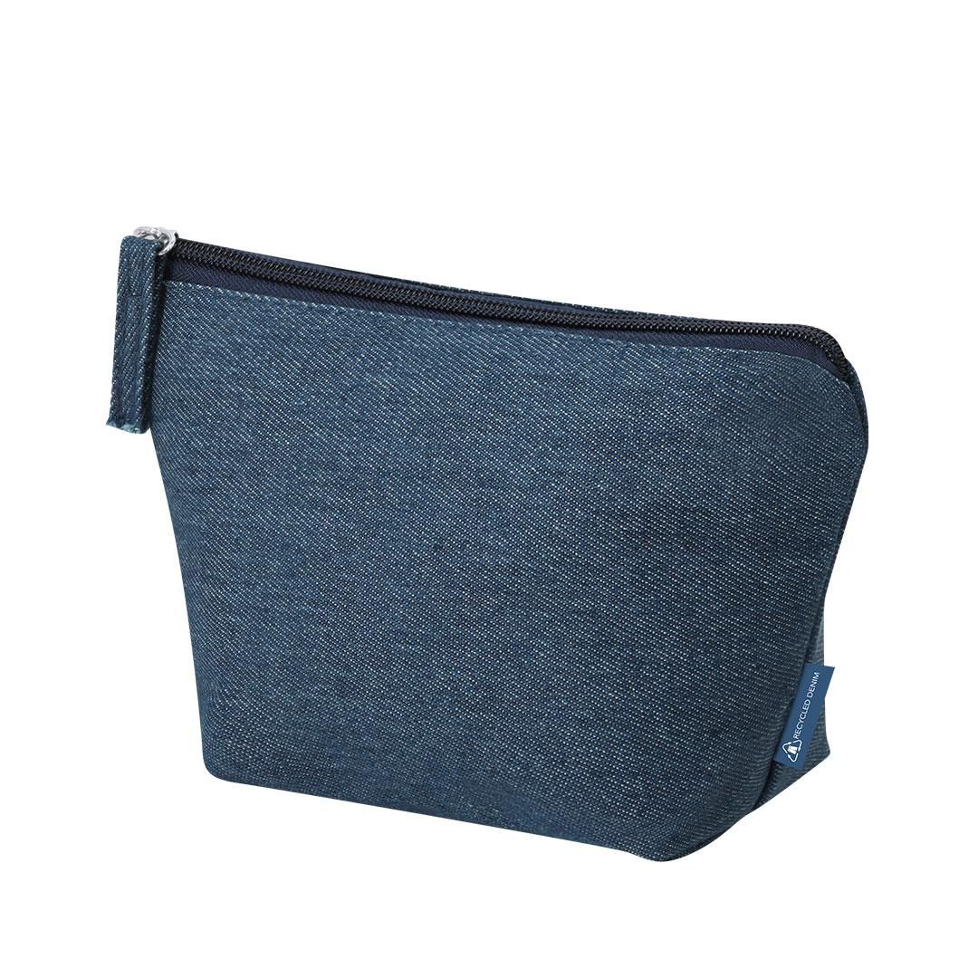 Neceser fabricado principalmente en tejido vaquero reciclado. Compartimento principal con cierre de cremallera. Incluye etiqueta exterior con logotipo tejido vaquero reciclado.