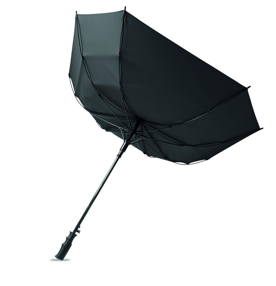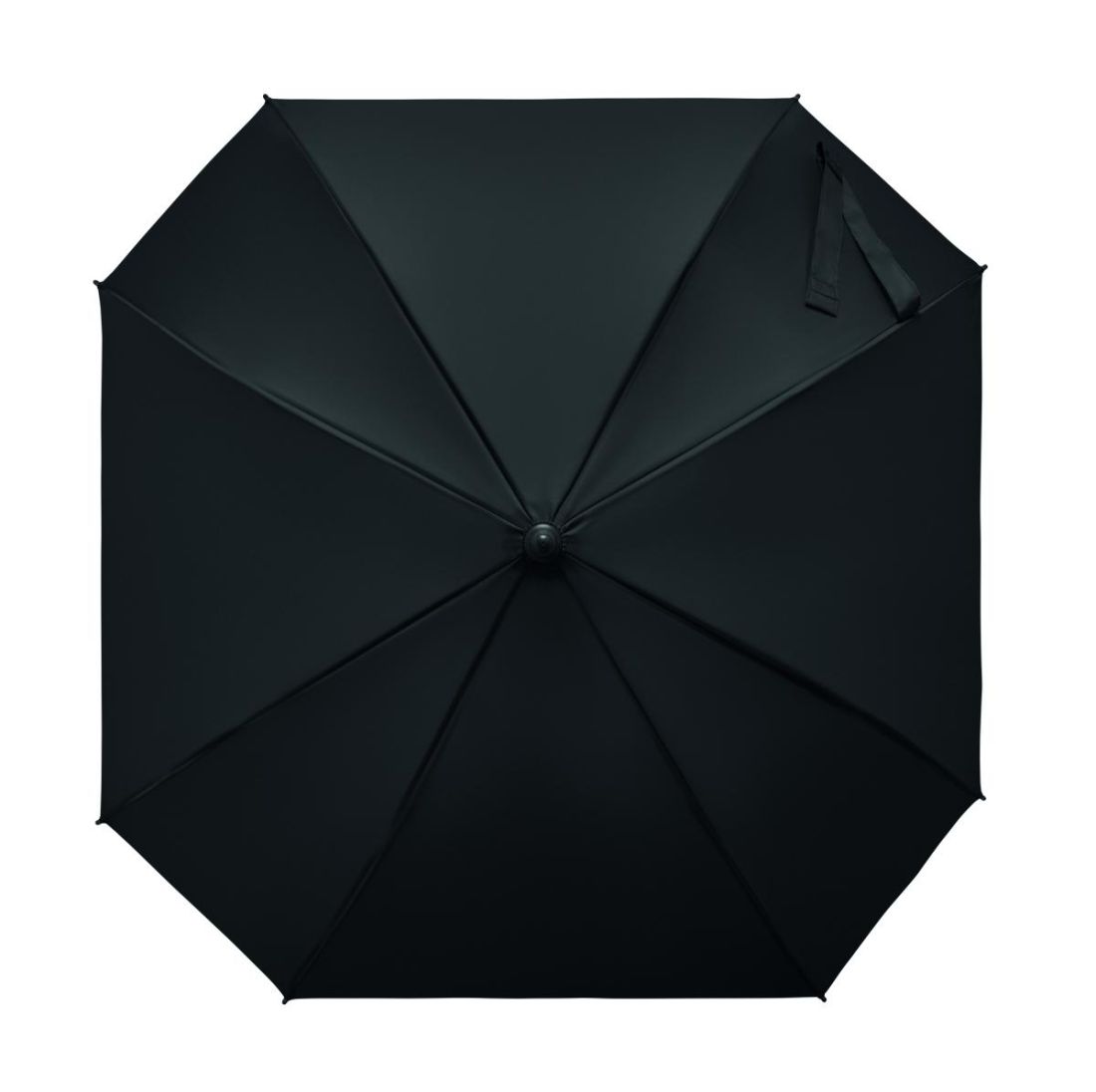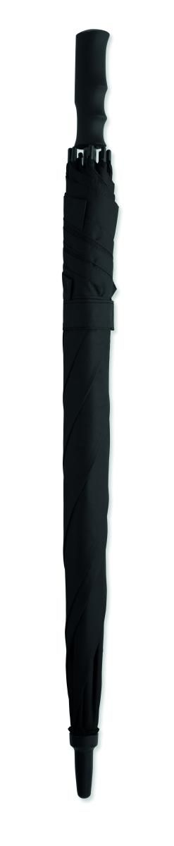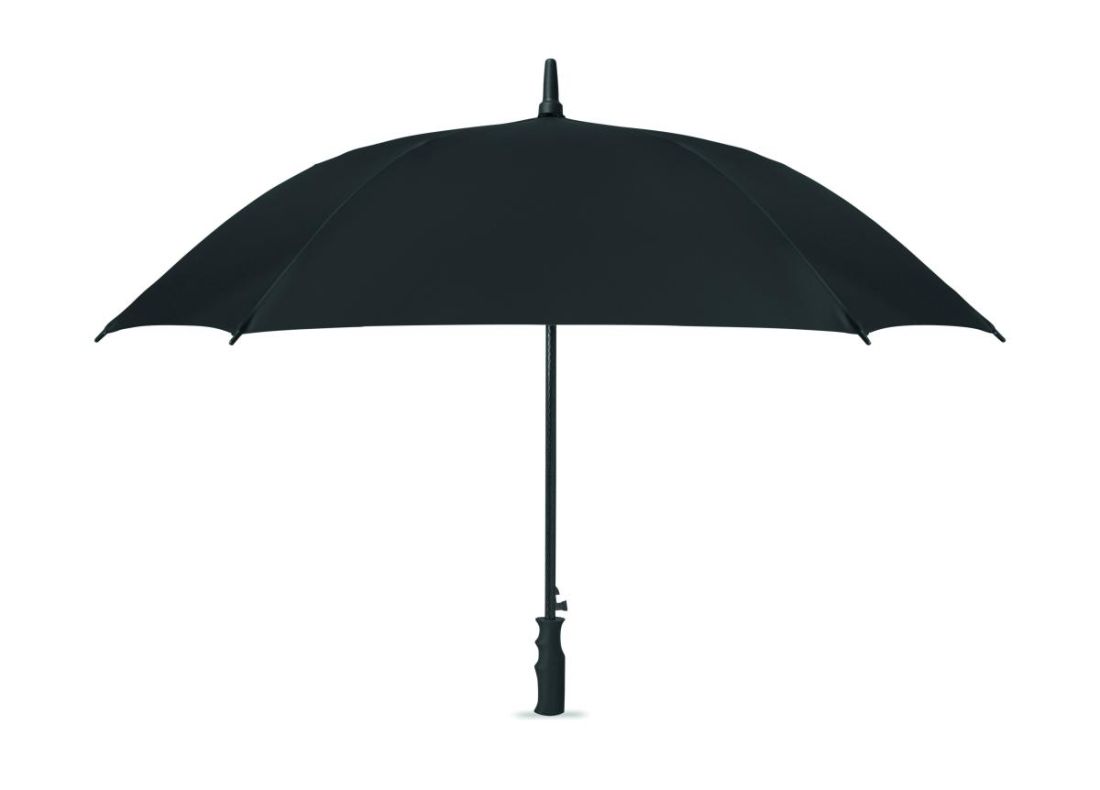 Paraguas cuadrado de 23 pulgadas de poliéster pongee 190T resistente al viento y con apertura automática. Con estructura y varillas de fibra de vidrio y mango de ABS con acabado de goma.