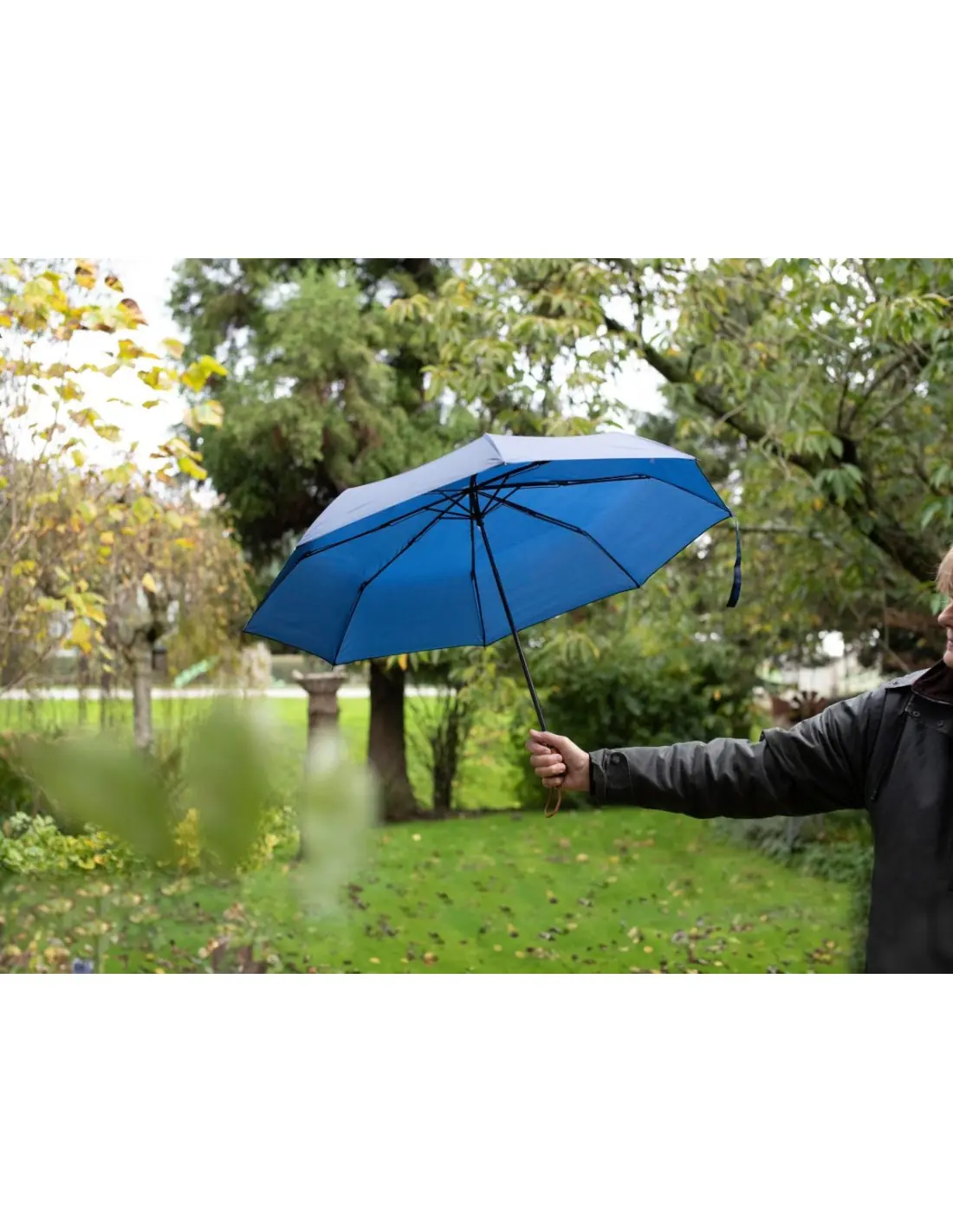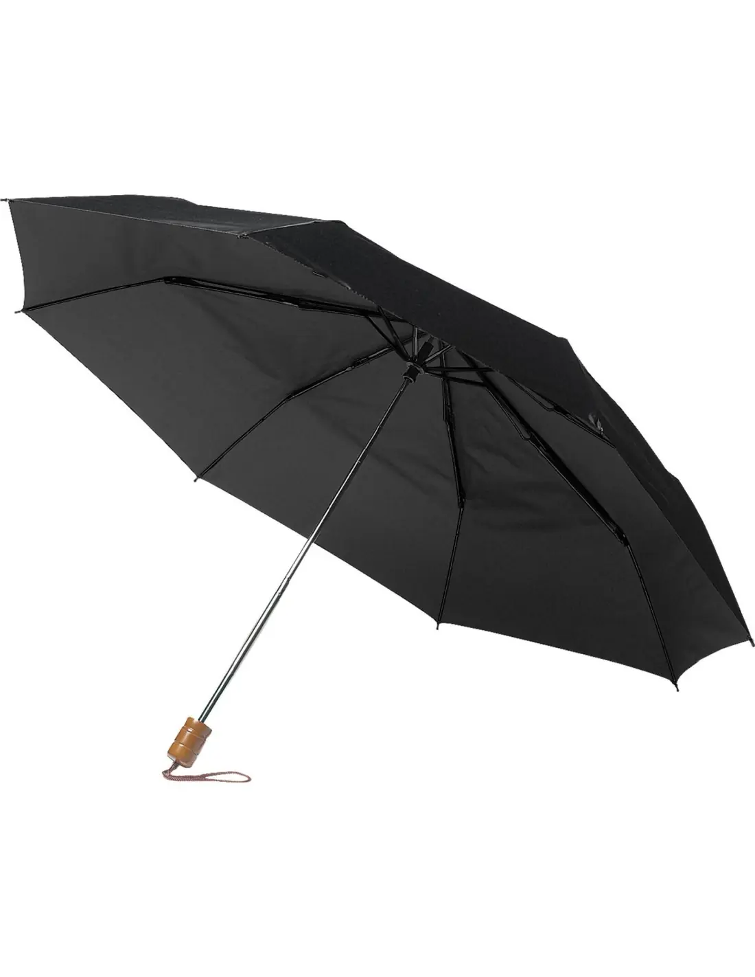 Paraguas plegable manual de 8 paneles de poliéster (190 T). Con puño de madera, varillas de metal, cierre velcro y funda de nailon a juego.