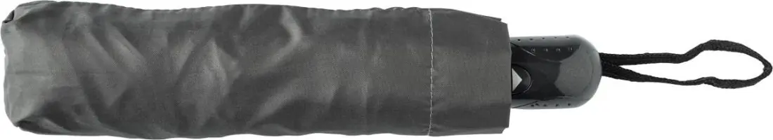 Paraguas automático plegable, de 8 paneles de pongee (180 T). Mango de plástico y estructura de metal y fibra de vidrio. Funda a juego incluida.
