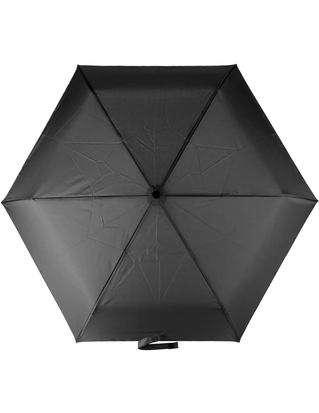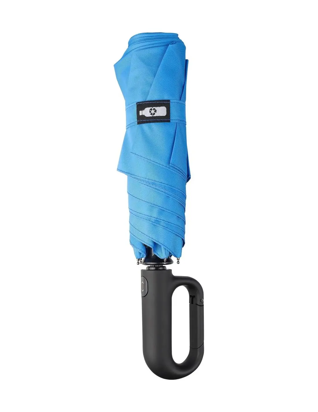 Paraguas automático plegable rPET 190T (27 pulgadas) con 6 paneles y marco de acero. Cuenta con etiqueta rPET en el cierre de velcro y asa de mosquetón de plástico. Incluye funda. A prueba de viento.