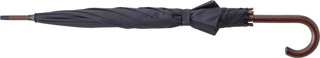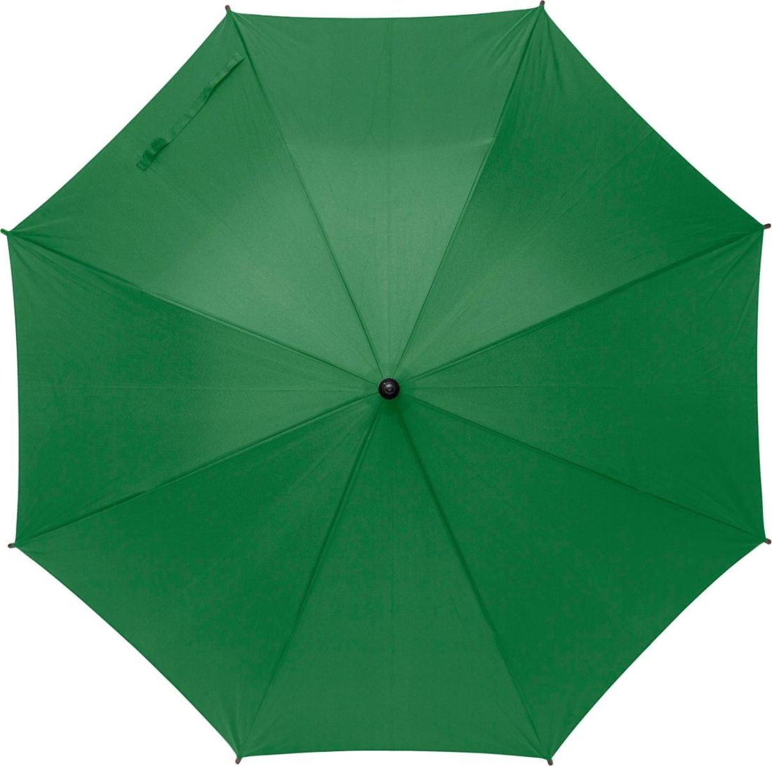 Paraguas de 8 paneles automático de rPET y poliéster (170 T). Mango de plástico y estructura de metal y fibra de vidrio.