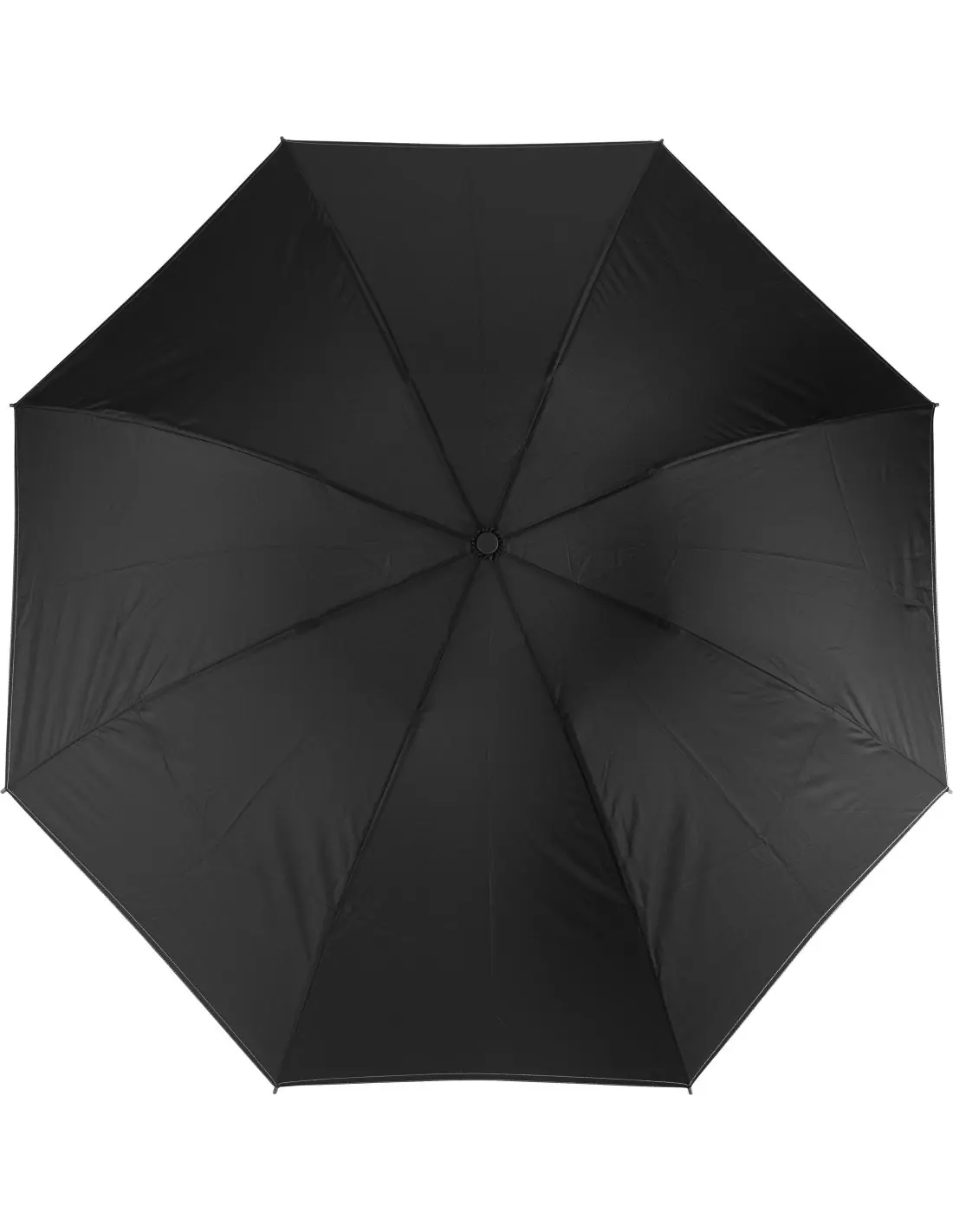 Paraguas reversible y plegable de 8 paneles de pongee (190 T). Se abre y cierra automáticamente. Eje central metálico, varillas de fibra de vidrio y mango de plástico. Funda a juego incluida.