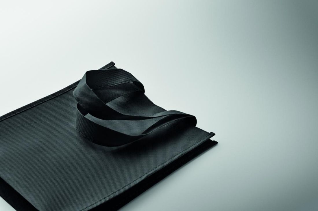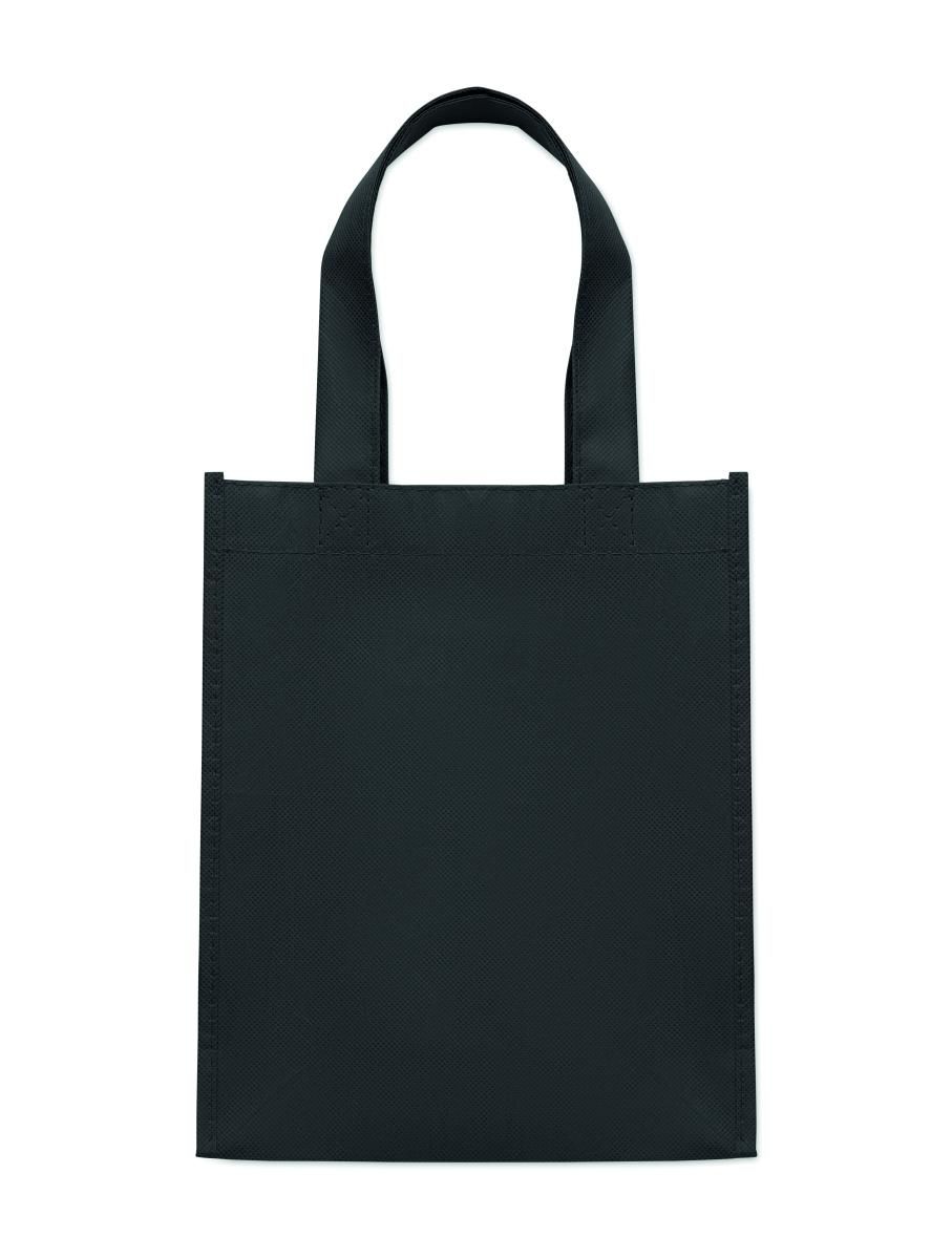 Bolsa pequeña para regalos o regalos en RPET no tejido con asas cortas y fuelles inferiores. 80 gr/m².