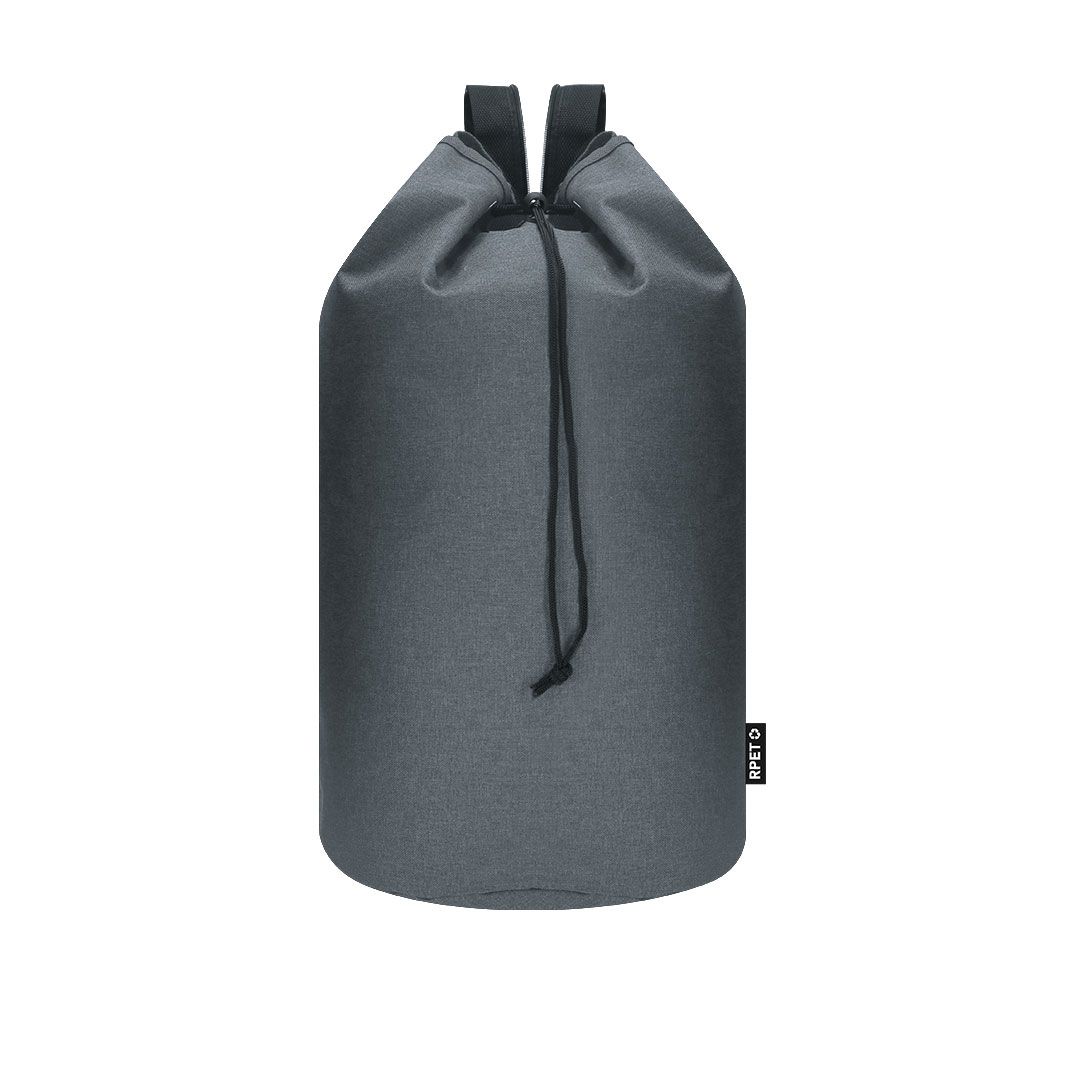 Petate multiusos de gran capacidad en resistente poliéster RPET 600D. Cierre superior de cuerda con accesorio de ajuste y argollas metálicas reforzadas. Cinta de hombros trasera 2 en 1 con cierre de cremallera para transporte en un solo hombro o en los dos. Con distintivo de RPET en etiqueta.El material RPET se elabora a partir de plástico reciclado, para así fomentar la reutilización de residuos plásticos y ayudar a la sostenibilidad del planeta.