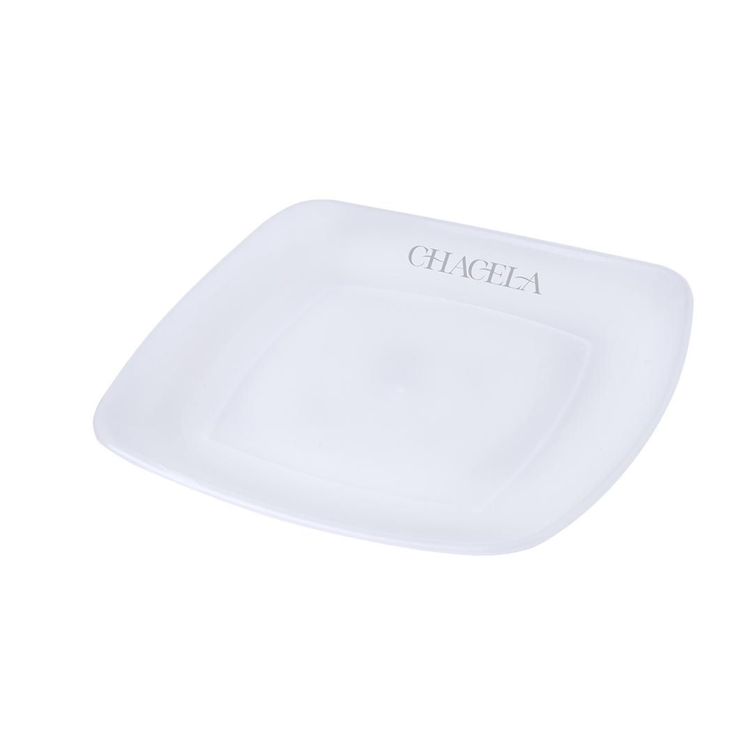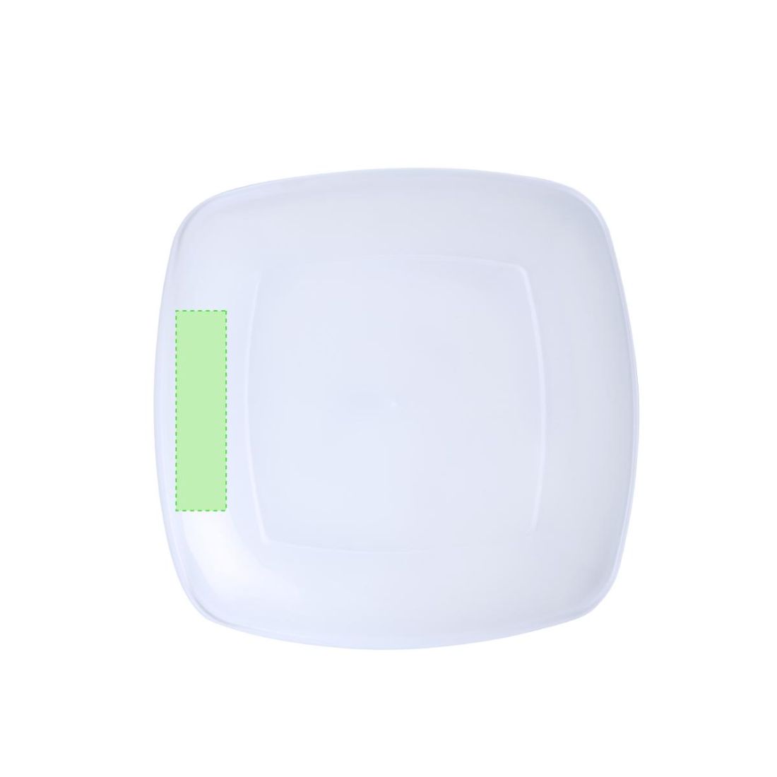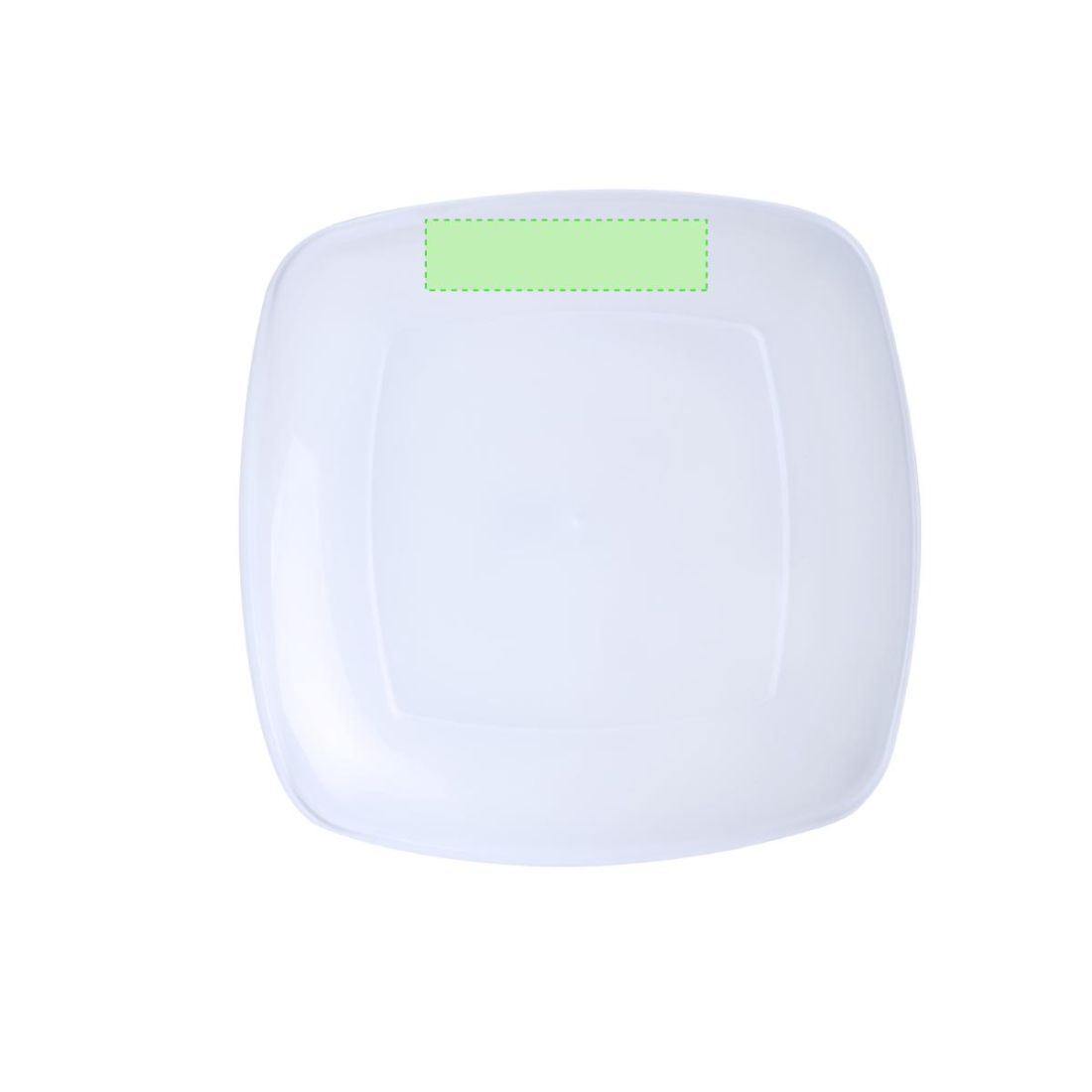 Plato plano en resistente y flexible material PP. Reutilizable y en acabado translúcido cuadrado.