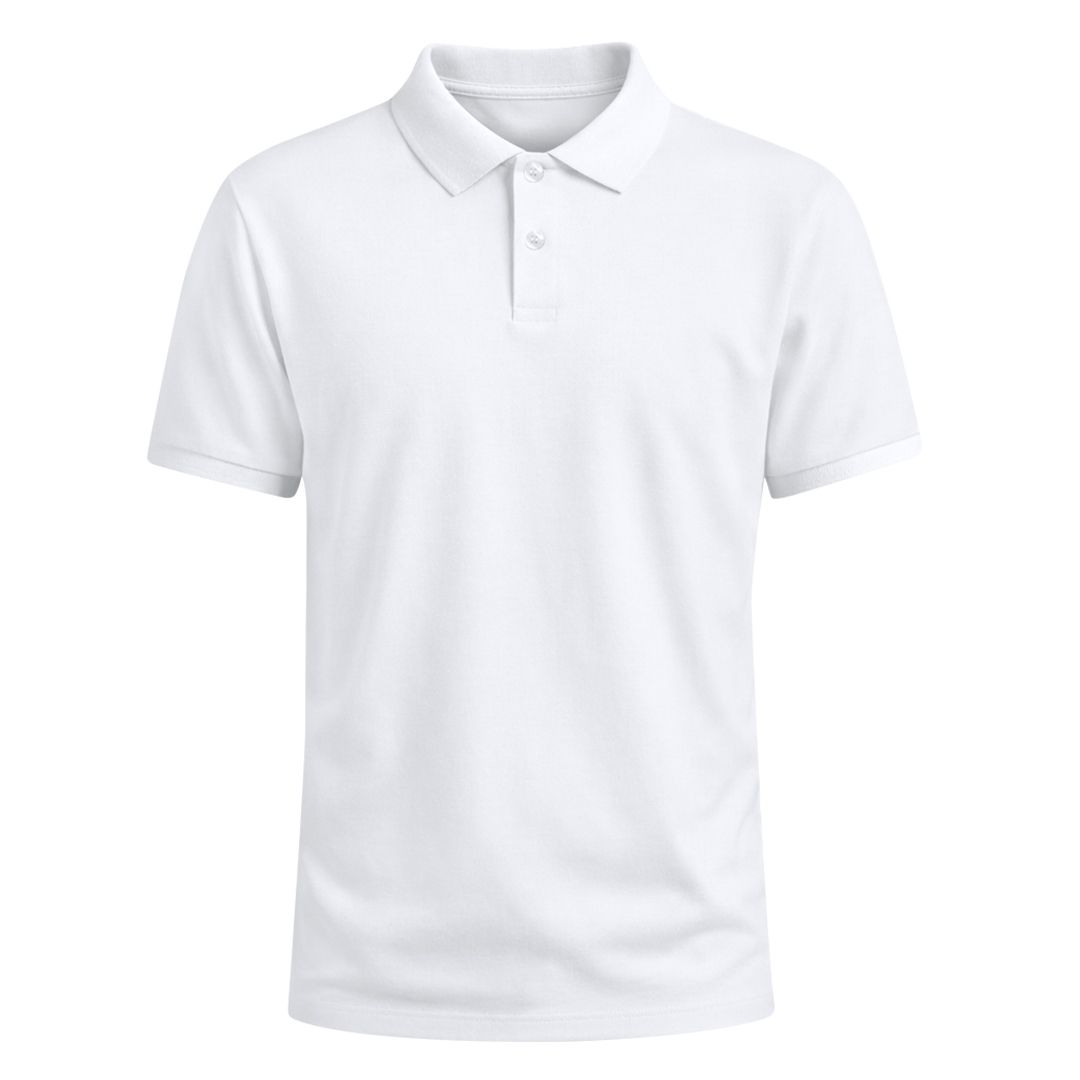 Polo de piqué para adulto en color blanco. En material 100% algodón de 220g/m2. Con dos botones de cierre a juego y aperturas laterales en los bajos. Tallas S, M, L, XL, XXL, 3XL.