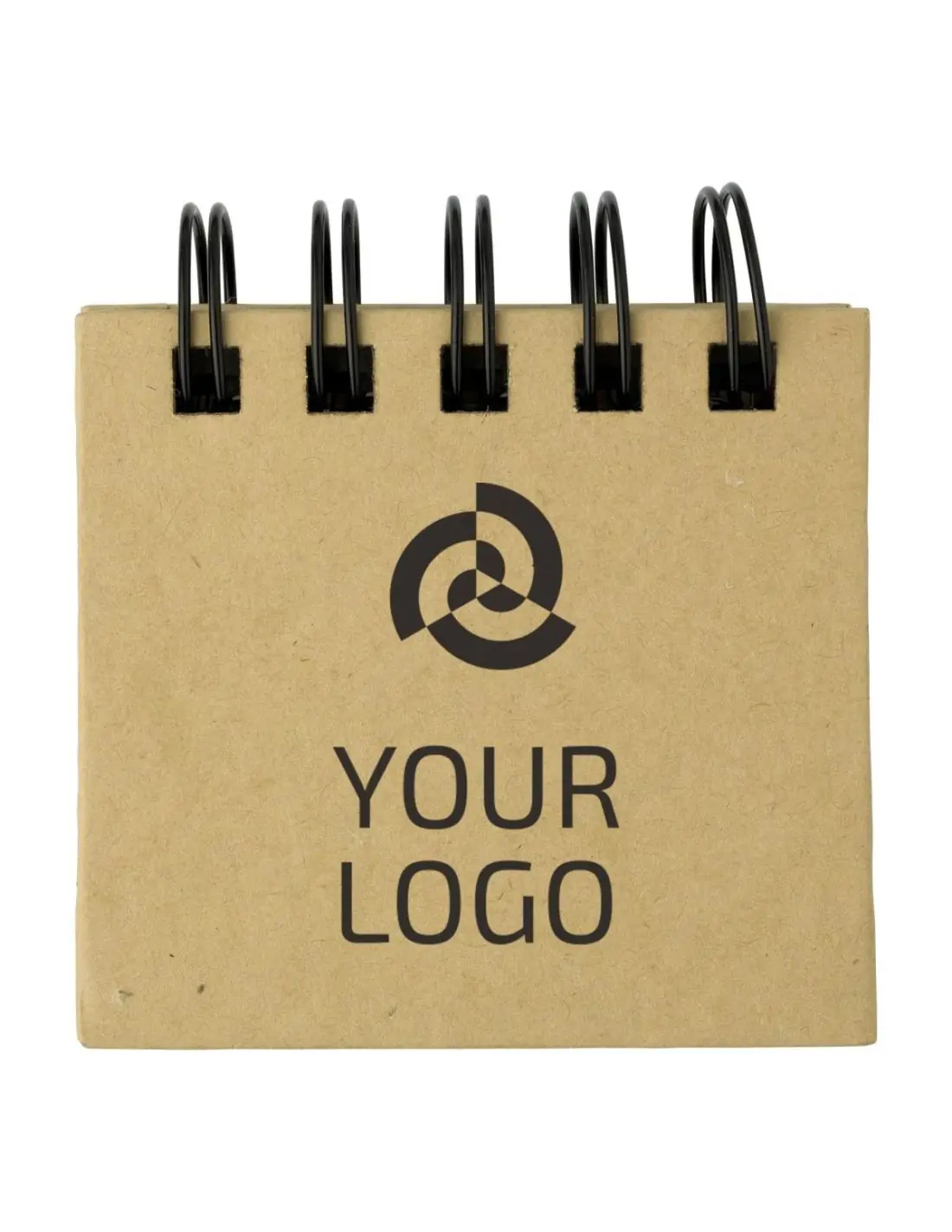 Bloc de notas de cartón con espiral. Tiene 100 memos adhesivos grandes y 125 más pequeños en diferentes colores.