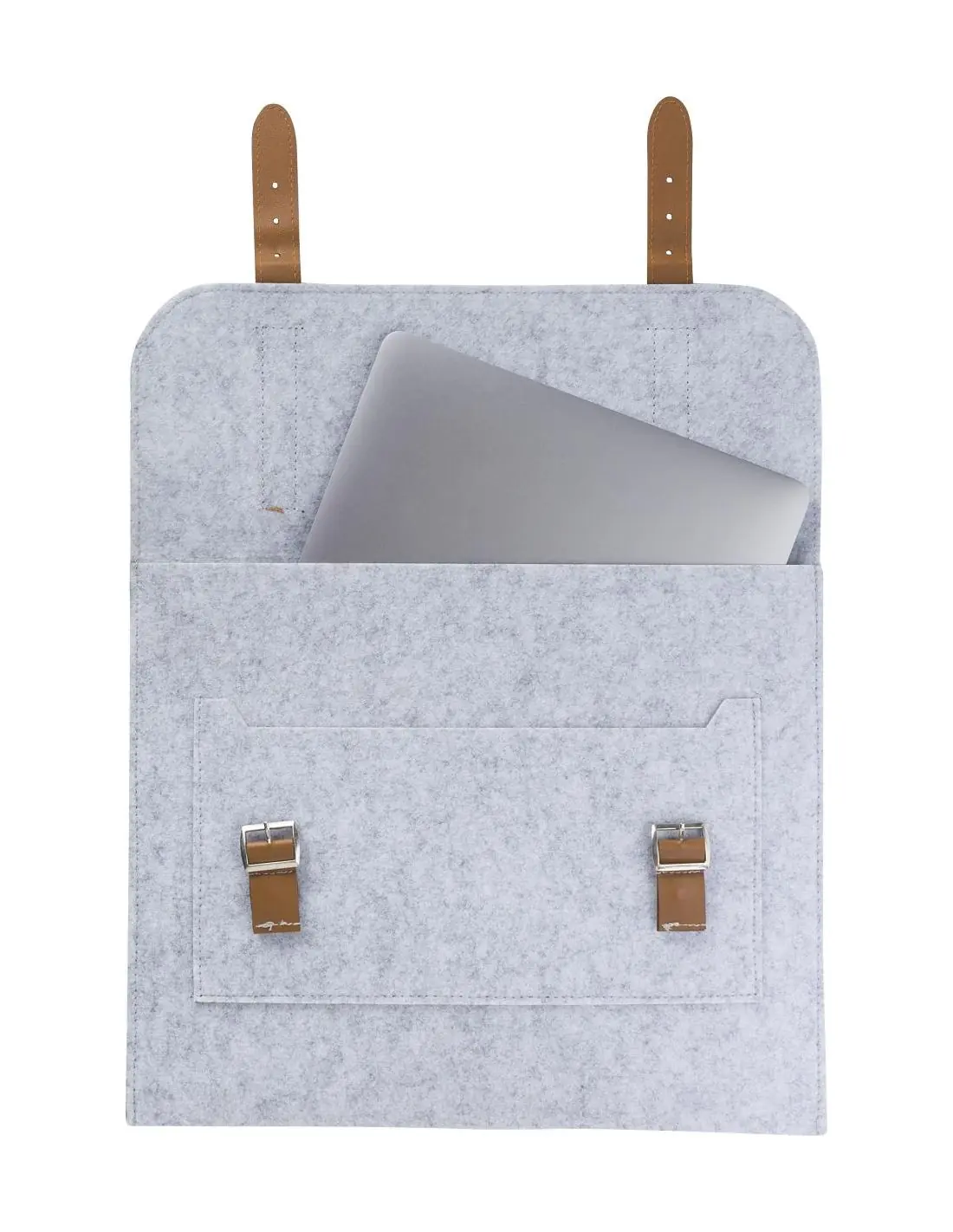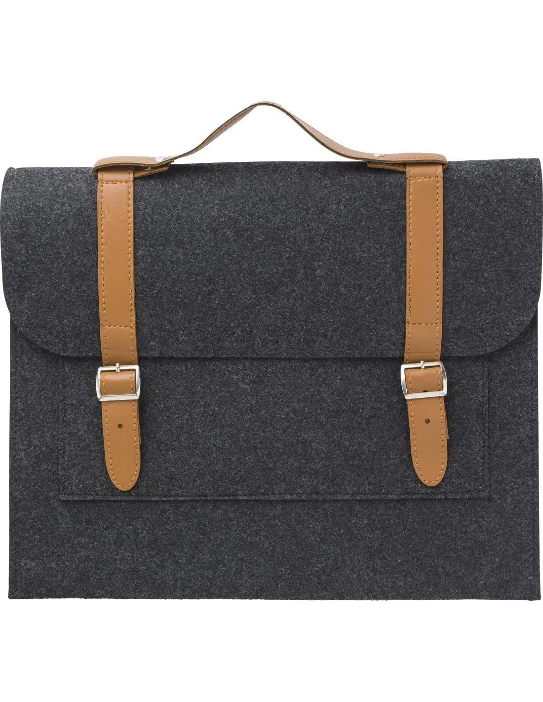 Portadocumentos de fieltro rPET con detalles de PU. Un compartimento grande y cierre con dos hebillas.