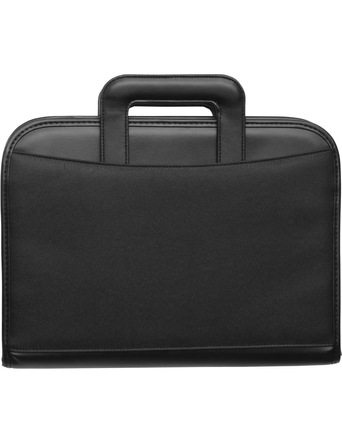 CarPETa de congresos (aprox. A4) de microfibra y polipiel, con bloc de 20 hojas, calculadora de 8 dígitos, porta bolígrafos, cierre cremallera y 2 asas cortas. Bolígrafo no incluido.
