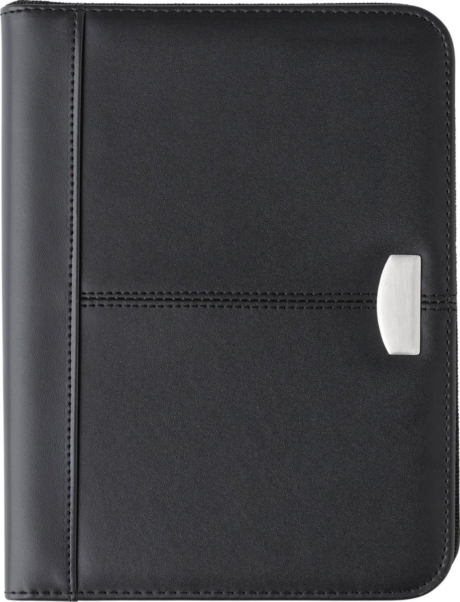 CarPETa de congresos (aprox. A5) de piel regenerada, con bloc de 30 hojas lineadas y cierre cremallera. Bolígrafo no incluido.