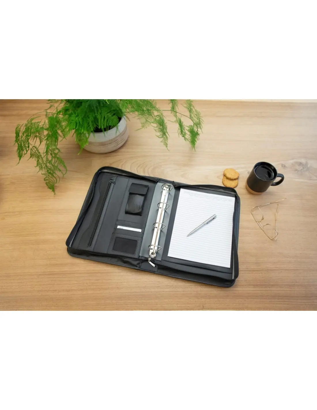 CarPETa de congresos (aprox. A4) de piel regenerada, con bloc de 30 hojas lineadas y cierre cremallera. Bolígrafo no incluido.
