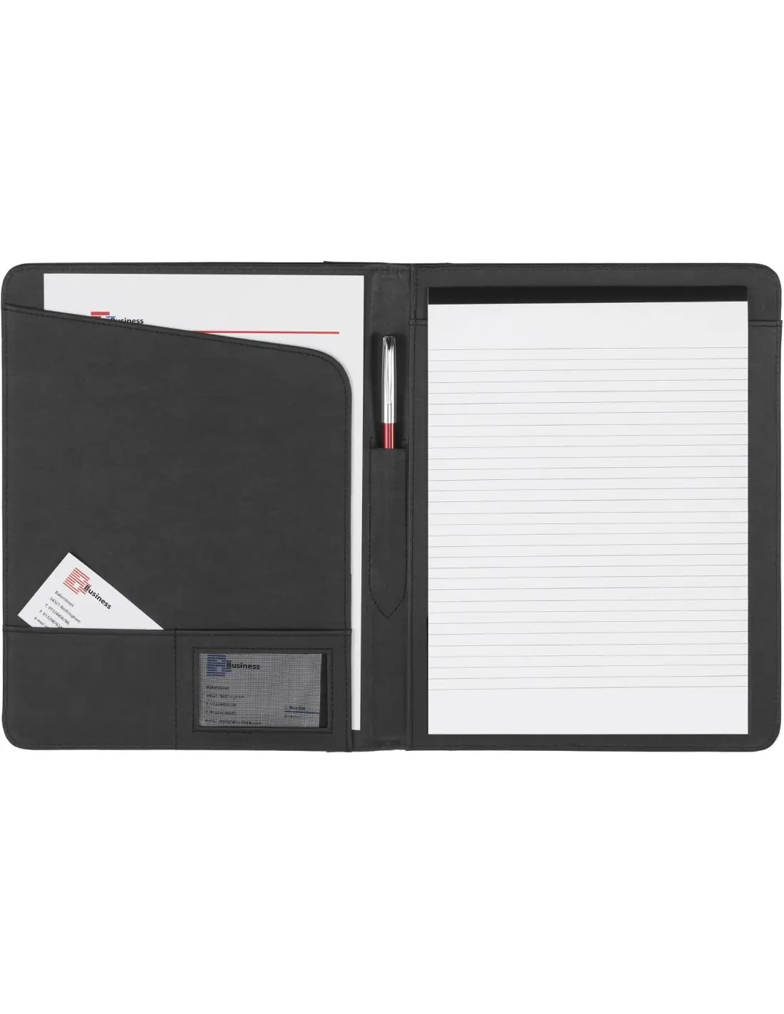CarPETa de congresos (aprox. A4) de piel regenerada, con bloc de 30 hojas lineadas. Bolígrafo no incluido.