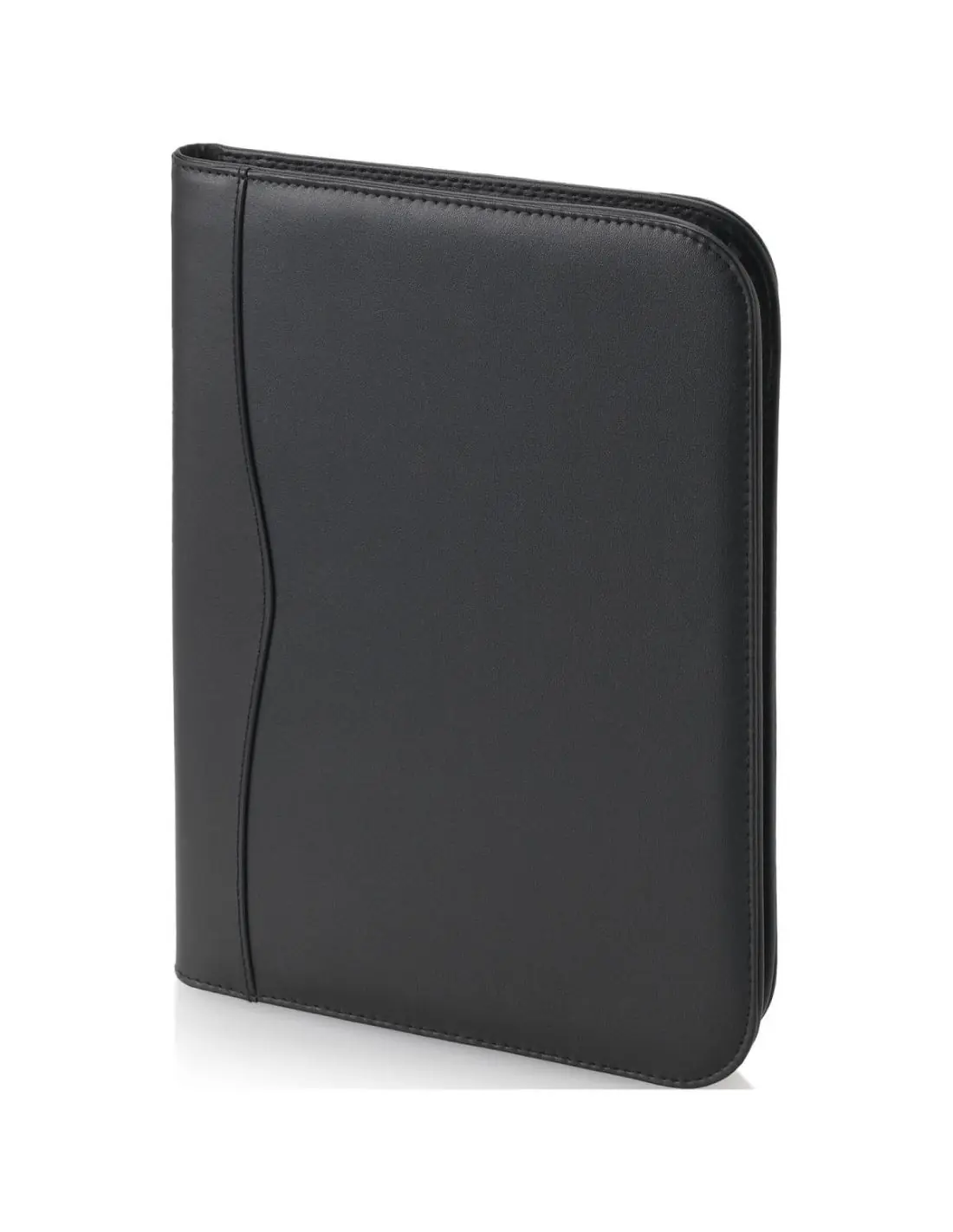 El artículo perfecto con el que cada empleado contribuye indirectamente a dar a conocer su marca: la cartera Ebony. La cartera, de tamaño A4, incluye un práctico compartimento y un bolsillo con cremallera para guardar documentos. Además, cuenta con un bloc de notas forrado de 20 páginas y un bucle para el bolígrafo (bolígrafo y accesorios no incluidos). Cierra la cartera con la cremallera para mantener el contenido ordenado y bien protegido. La cartera está fabricada en imitación de piel duradera y ofrece mucho espacio para logotipos grandes.