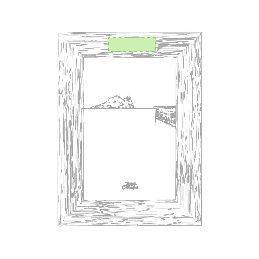 Portafotos de línea nature fabricado en MDF, con cristal de protección y soporte posterior para orientación en horizontal o en vertical. Diseñado para fotografías con tamaño de hasta 10x15 cm. Presentado en atractiva caja individual de diseño eco.