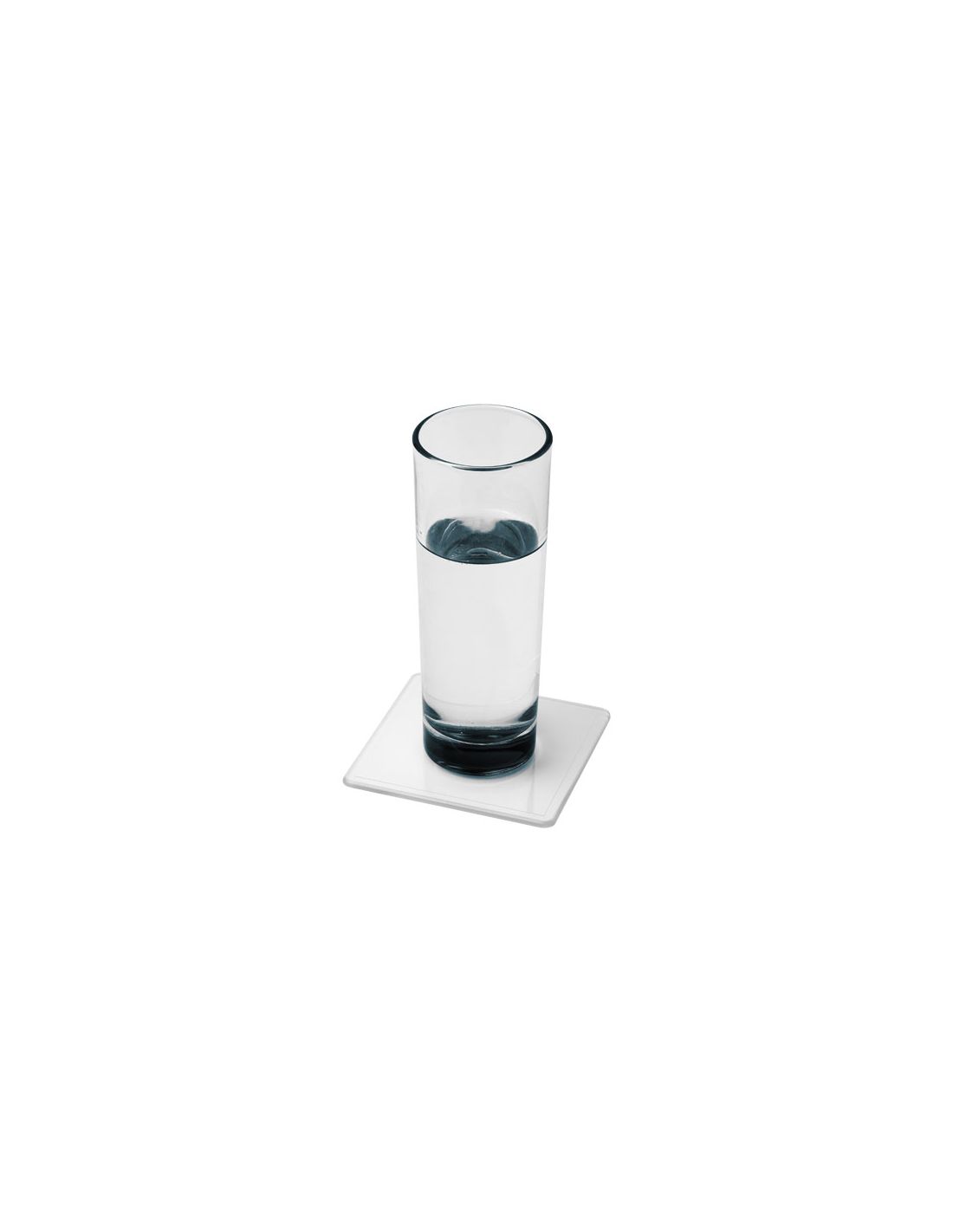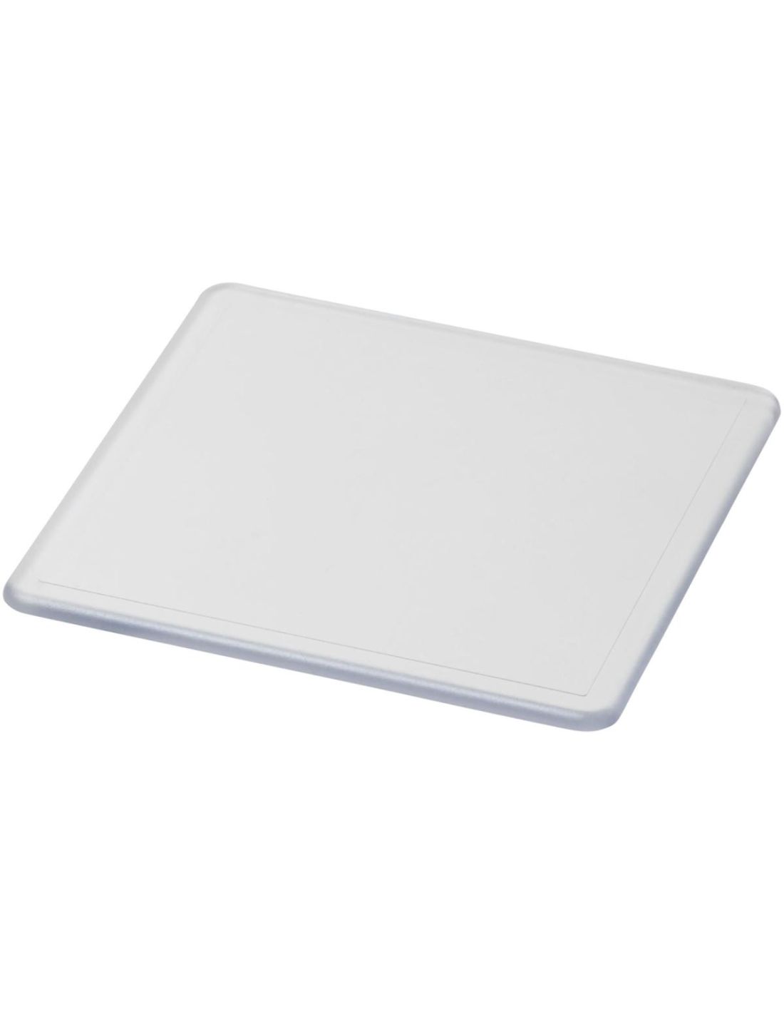 Posavasos de plástico rígido con borde biselado.