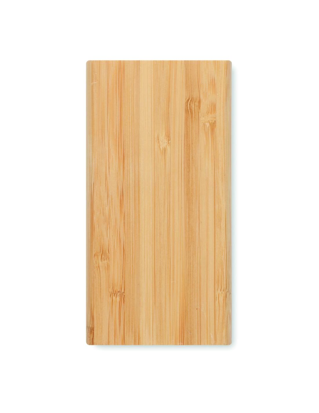 Powerbank inalámbrico. 6000 mAh. Bambú. PD 20W. Salidas: USB-C hasta 20W. Carga inalámbrica hasta 15W. Entrada: USB-C. 4 indicadores LED. Cable USB-C a USB-C (2A) con adaptador USB-A incluido.