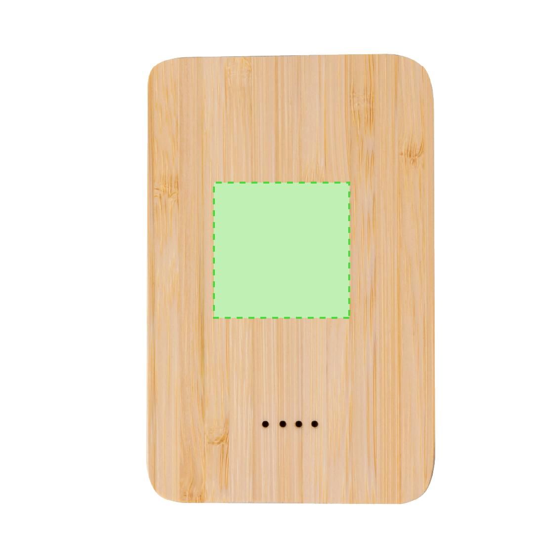 Batería auxiliar externa de 5.000 mAh, con cuerpo fabricado en Aluminio Reciclado y superficie en bambú. Con 2 salidas USB y conexión dual de...
