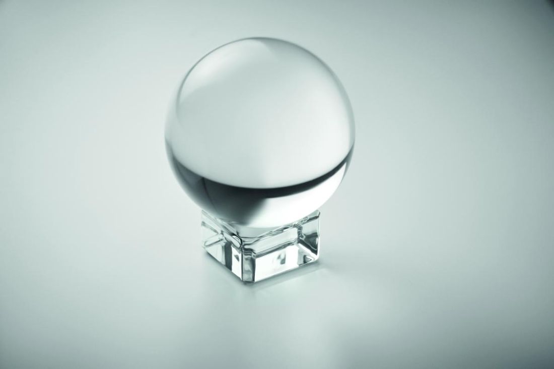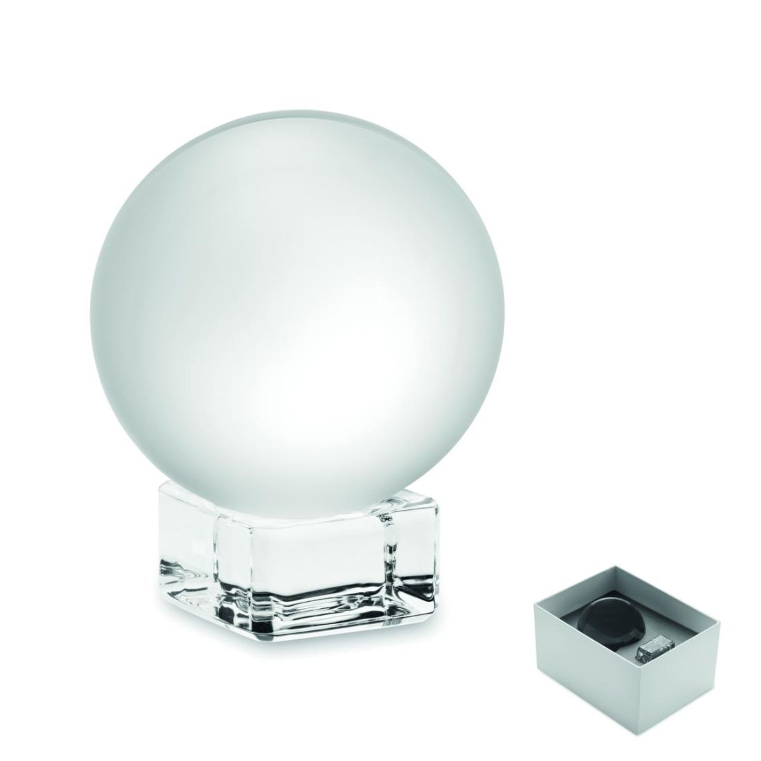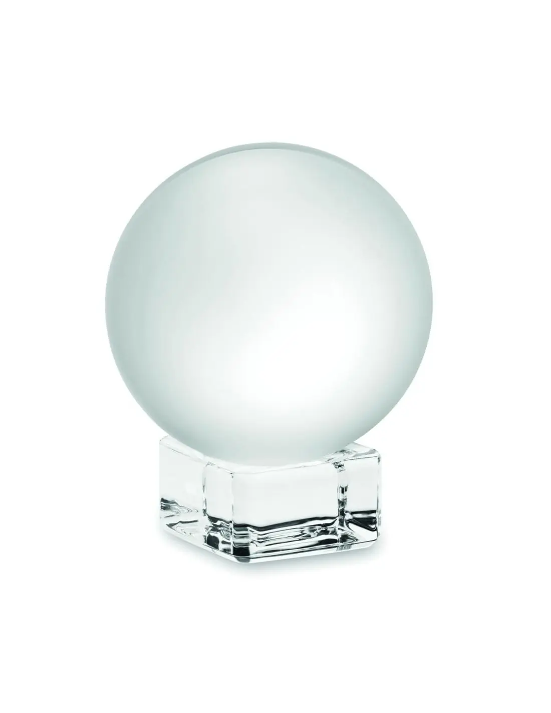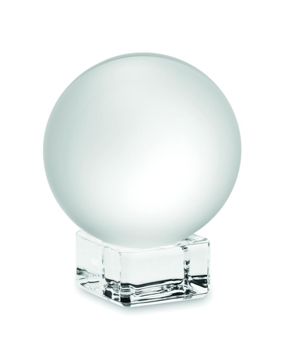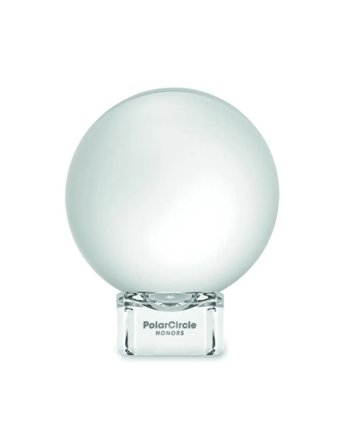 Premio o trofeo redondo de cristal con base. Presentado en caja de regalo.