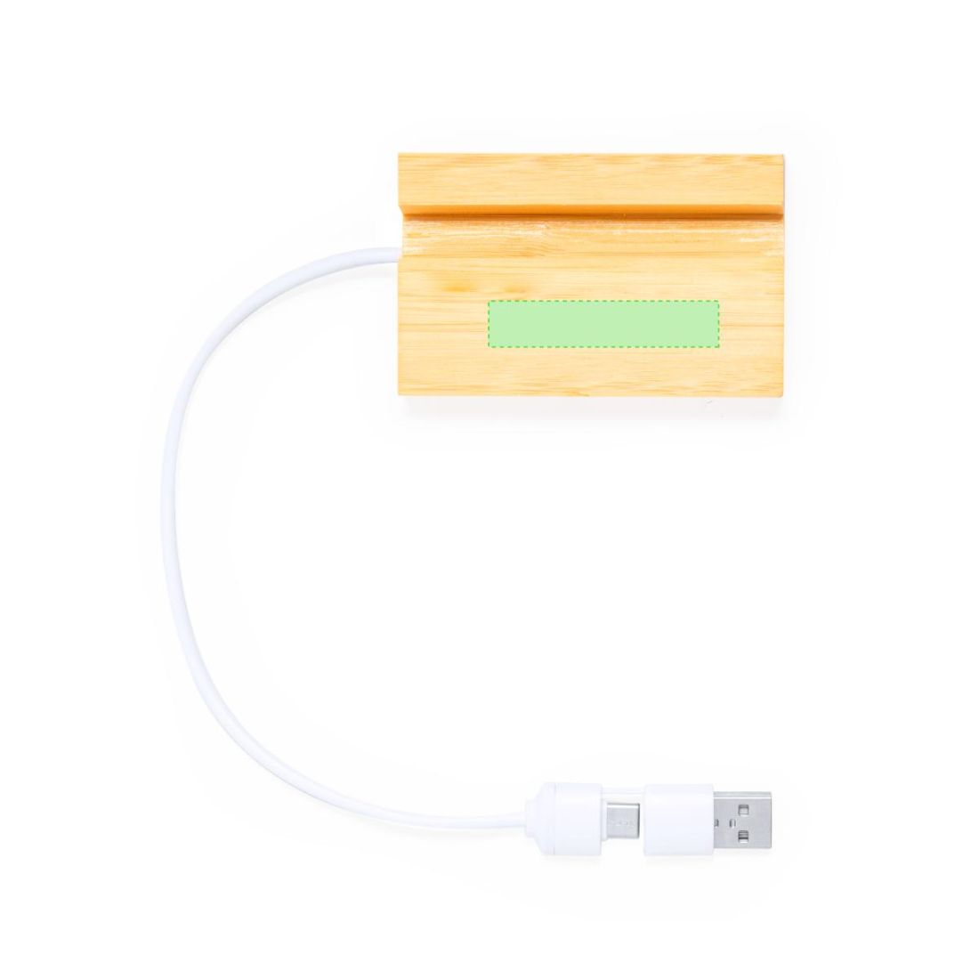 Puerto USB 2.0 fabricado en bambú. Con 1 puerto Tipo C y 2 puertos USB. Además, incluye un práctico soporte para smartphone o tablet. Presentado en atractiva caja de diseño eco.Materiales como el bambú fomentan la utilización de materias primas naturales, reduciendo las emisiones contaminantes. Proviene de una planta de gran resistencia y versatilidad, con crecimiento y regeneración rápidos, siendo una excelente alternativa al uso de madera tradicional.