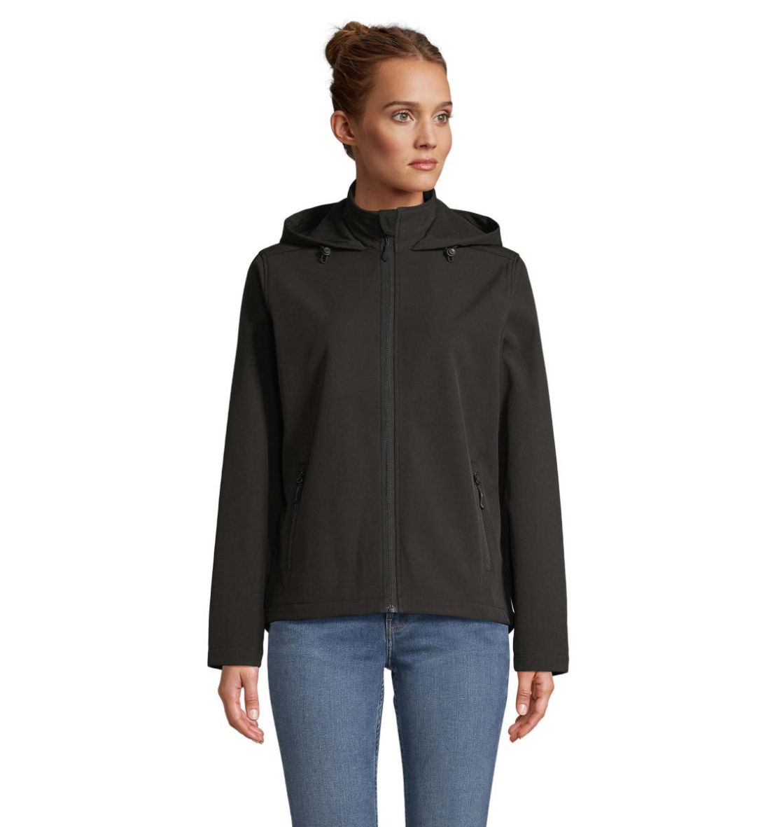 SOL'S RACE HOODED WOMEN, chaqueta softshell con capucha para mujer, 100% poliéster reciclado Forro polar: 100% poliéster reciclado 2 capas, Cierre frontal y bolsillos laterales con cremallera de nailon negro Tiradores de cremallera negros Capucha con cordón de ajuste Espalda ligeramente más larga. Acerca de la correspondencia de tallas, consulte la tabla de tallas en la sección de documentación del producto.