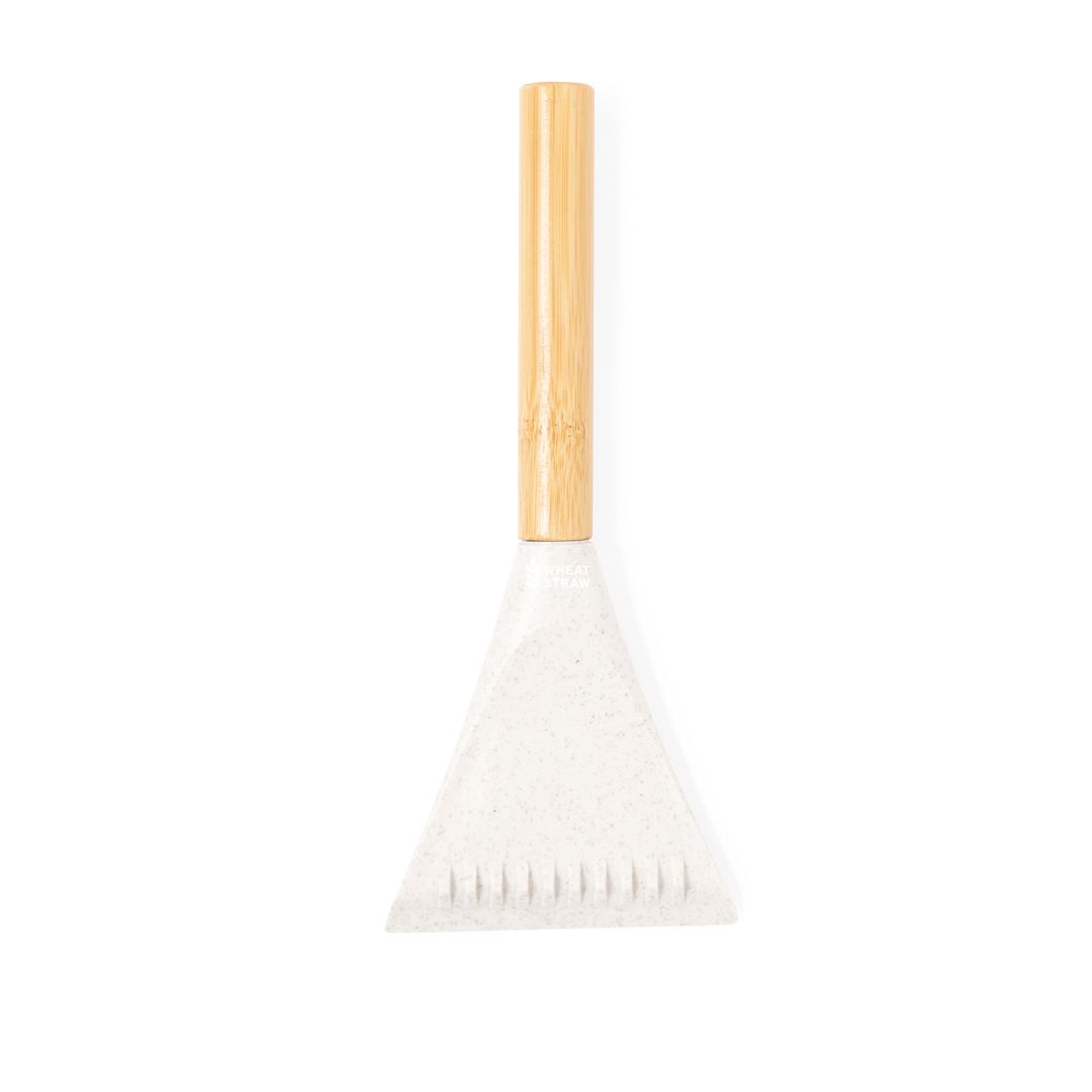 Práctico rascador de hielo fabricado en bambú y caña de trigo. Con forma de pala, su mango está fabricado en bambú y la zona de rascado está hecha de caña de trigo, con parte limpiadores y sierra integrada. Logo ditintivo en el mango y presentado individualmente en bolsa de papel kraft.Materiales como el bambú fomentan la utilización de materias primas naturales, reduciendo las emisiones contaminantes. Proviene de una planta de gran resistencia y versatilidad, con crecimiento y regeneración rápidos, siendo una excelente alternativa al uso de madera tradicional.La caña de trigo fomenta la utilización de materias primas naturales, reduciendo así las emisiones contaminantes.
