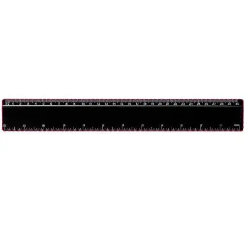 Regla de plástico rígida con marcas tanto en pulgadas como en centímetros. Tenga en cuenta que las marcas de la regla se imprimen junto con los logos, las reglas estándar de stock no llevarán marcas.