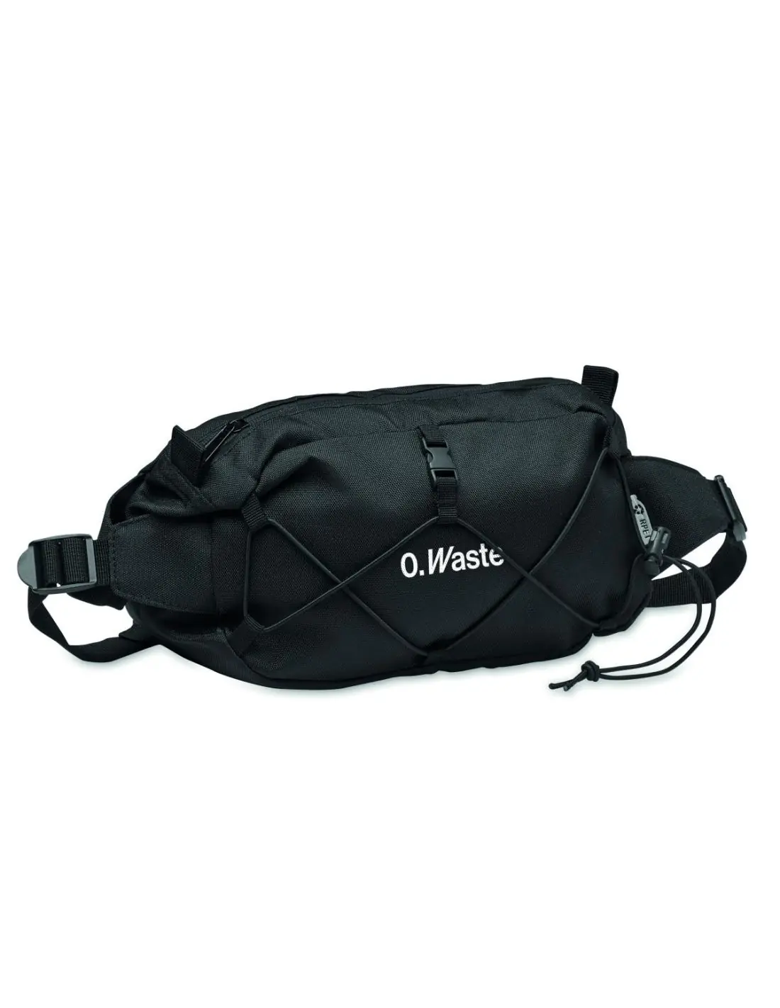 Riñonera de poliéster RPET 600D con compartimento principal con cremallera y correa de cintura ajustable. Incluye bolsillo interior.