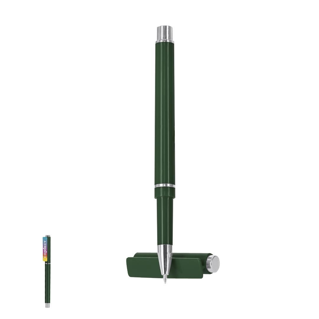 Elegante roller fabricado en ABS Reciclado. Detalles de acabado plateado, cuerpo en acabado sólido. Con cartucho jumbo, en tinta azul y con cierre de...