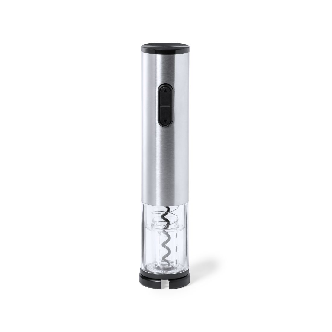 Sacacorchos eléctrico fabricado en acero inox y resistente ABS, con cortacápsulas incluido. Presentado en caja individual de diseño, con manual de instrucciones en español e inglés. Alimentación a pilas (4xAA no incluidas).