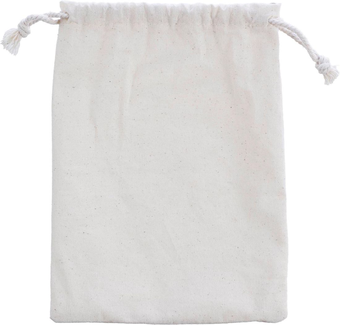 Set de baño de algodón con 4 piezas: cepillo de bambú, 2 esponjas y una piedra pómez (en bolsa). Presentado en una bolsa de algodón.