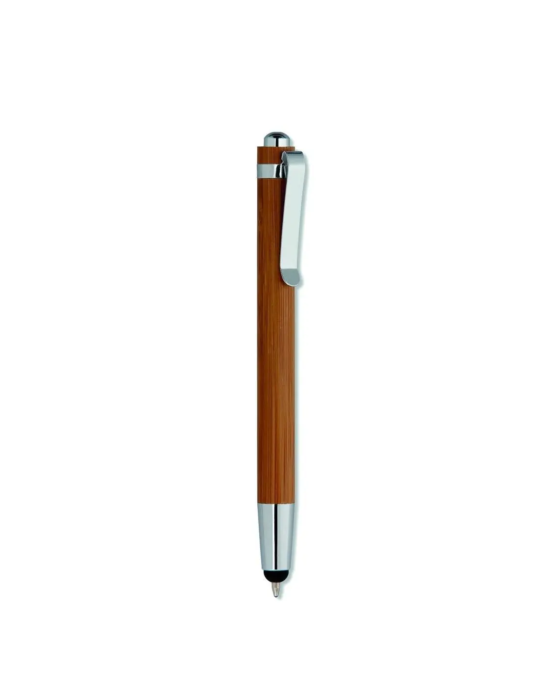 Set de bolígrafo de bambú con pulsador y puntero táctil y lápiz automático de bambú. Presentado en caja de cartón. Tinta Azul. El bambú es material…