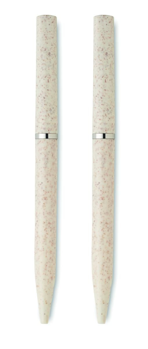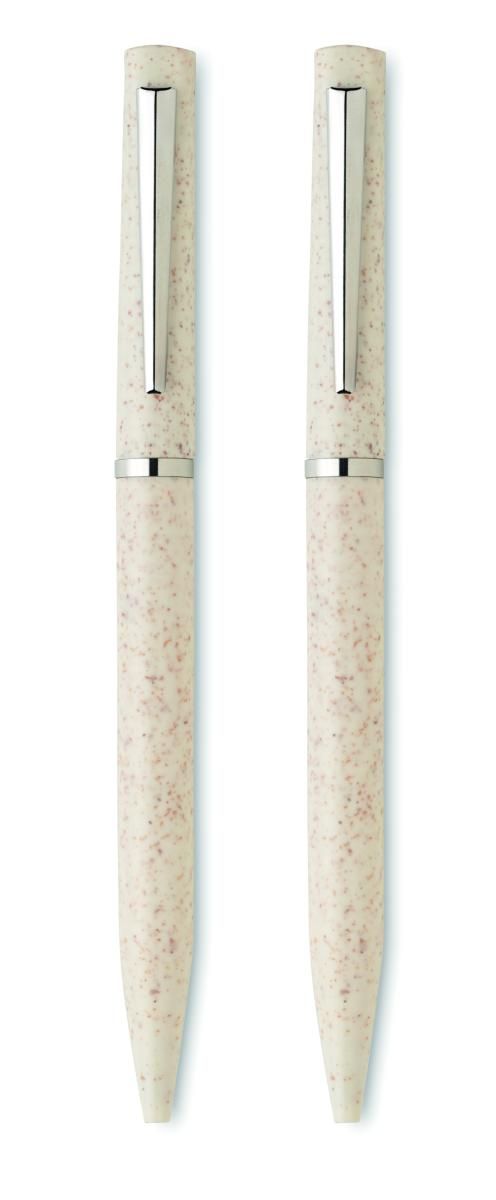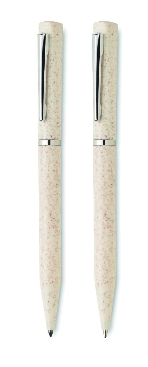 Set de bolígrafos de paja de trigo/ABS con 1 bolígrafo giratorio de tinta azul y 1 bolígrafo giratorio de grafito sin tinta. Presentado en caja de papel reciclado. FSC®-certified | FSC MIX, P5.1, FSC-C213206